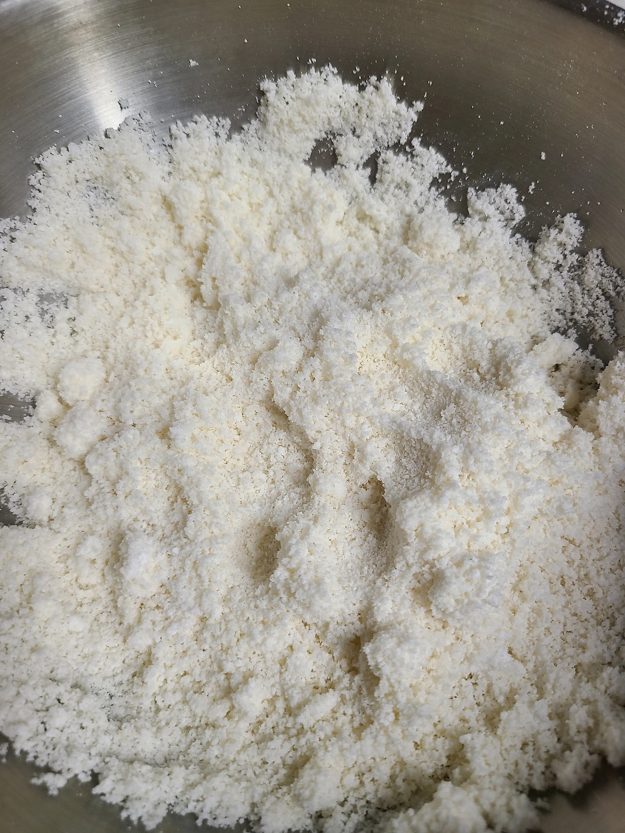 4) 쌀가루를 살짝 주먹쥐어 통통 튀겨 봤을 때 4-5번만에 부스러지면 적당하다.