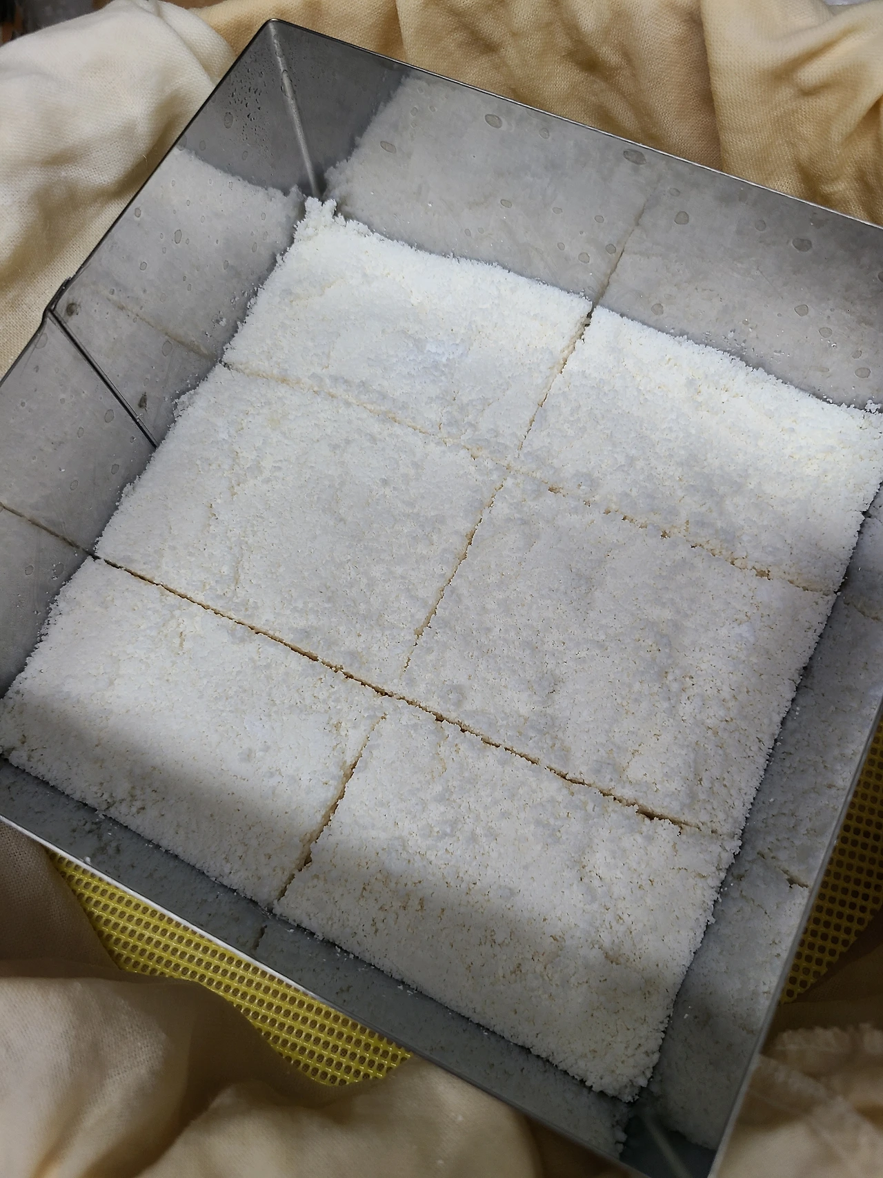 설탕 색깔 때문인지 약간 노르스름하게 떡이 쪄진 점, 200g은 너무 적은 양이라서 그런지 떡 두께가 얕아서 꺼내서 뒤집으면서 조금 망가진듯한 점.