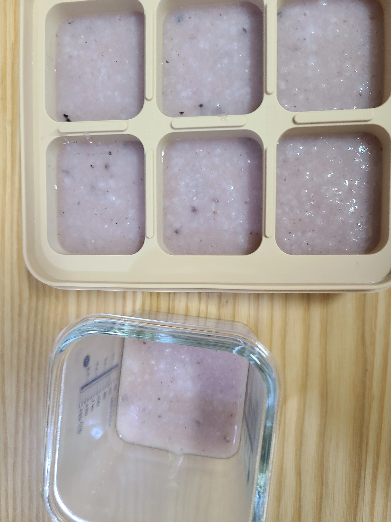 6) 40g씩 7개 큐브, 총량 280g 흑미쌀죽 완성.
