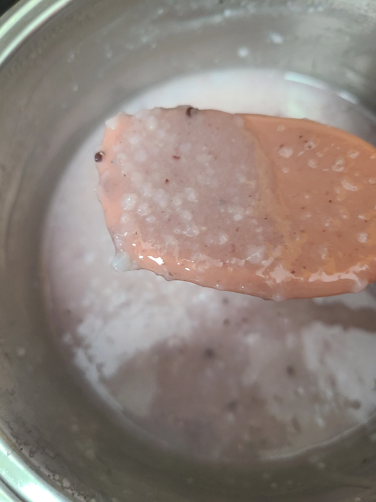 5) 끓으면 불을 중약으로 낮추어 원하는 질감이 될 때까지 잘 저어 준다.