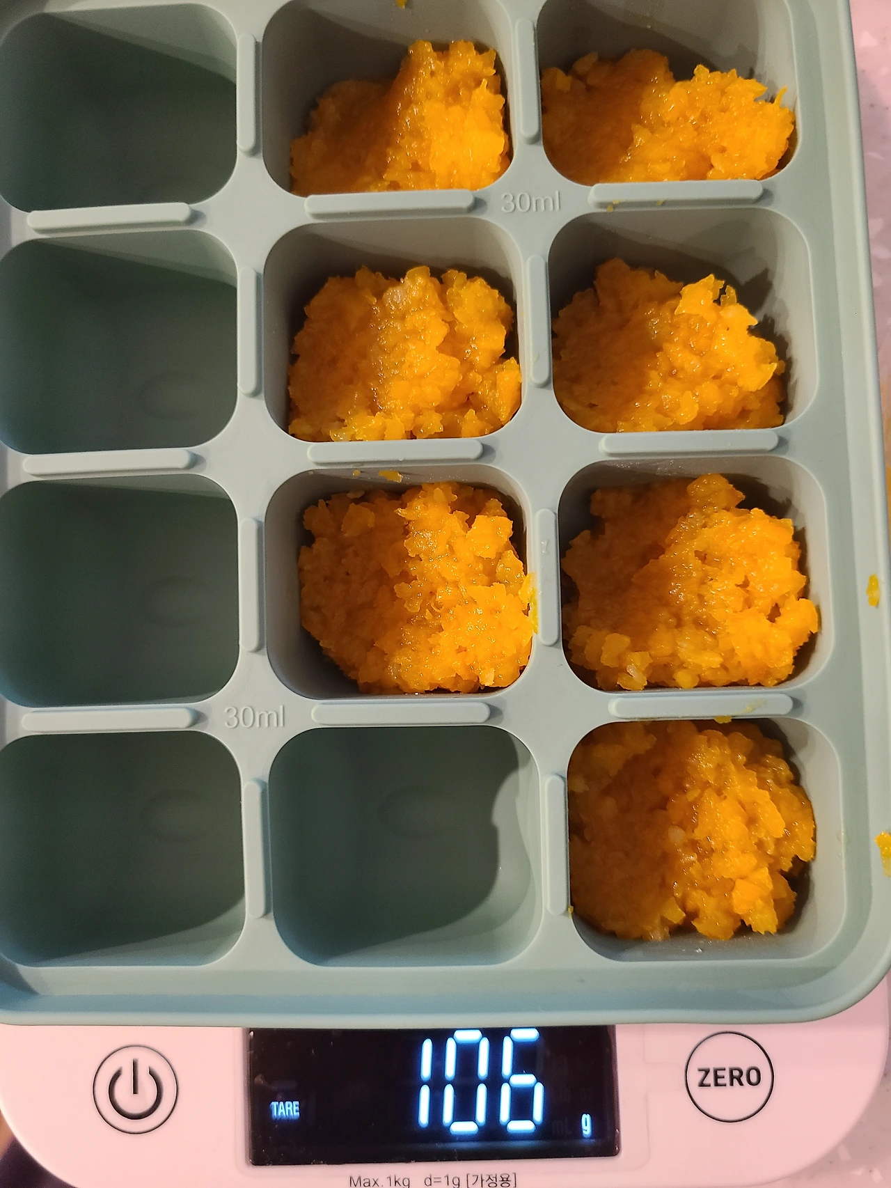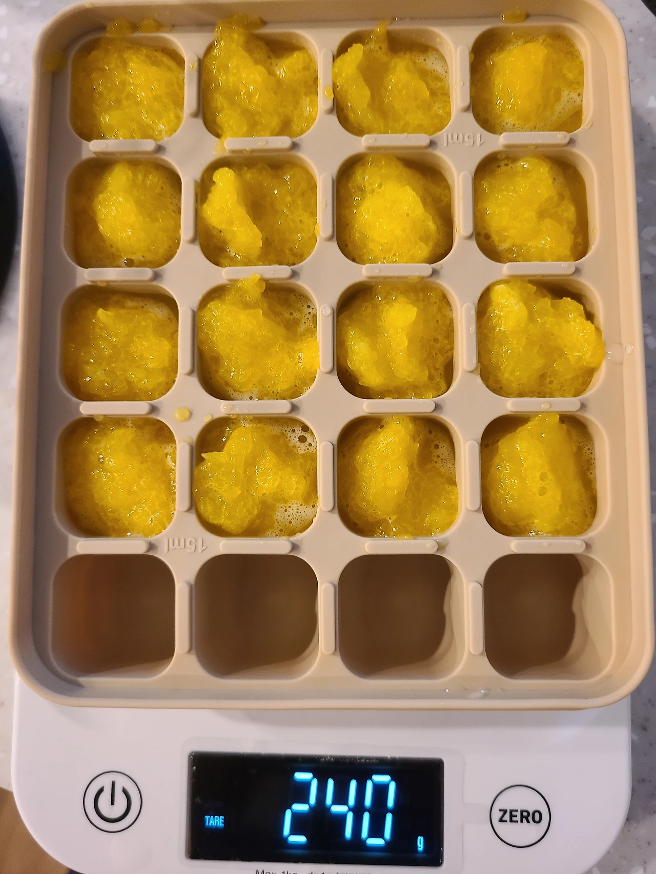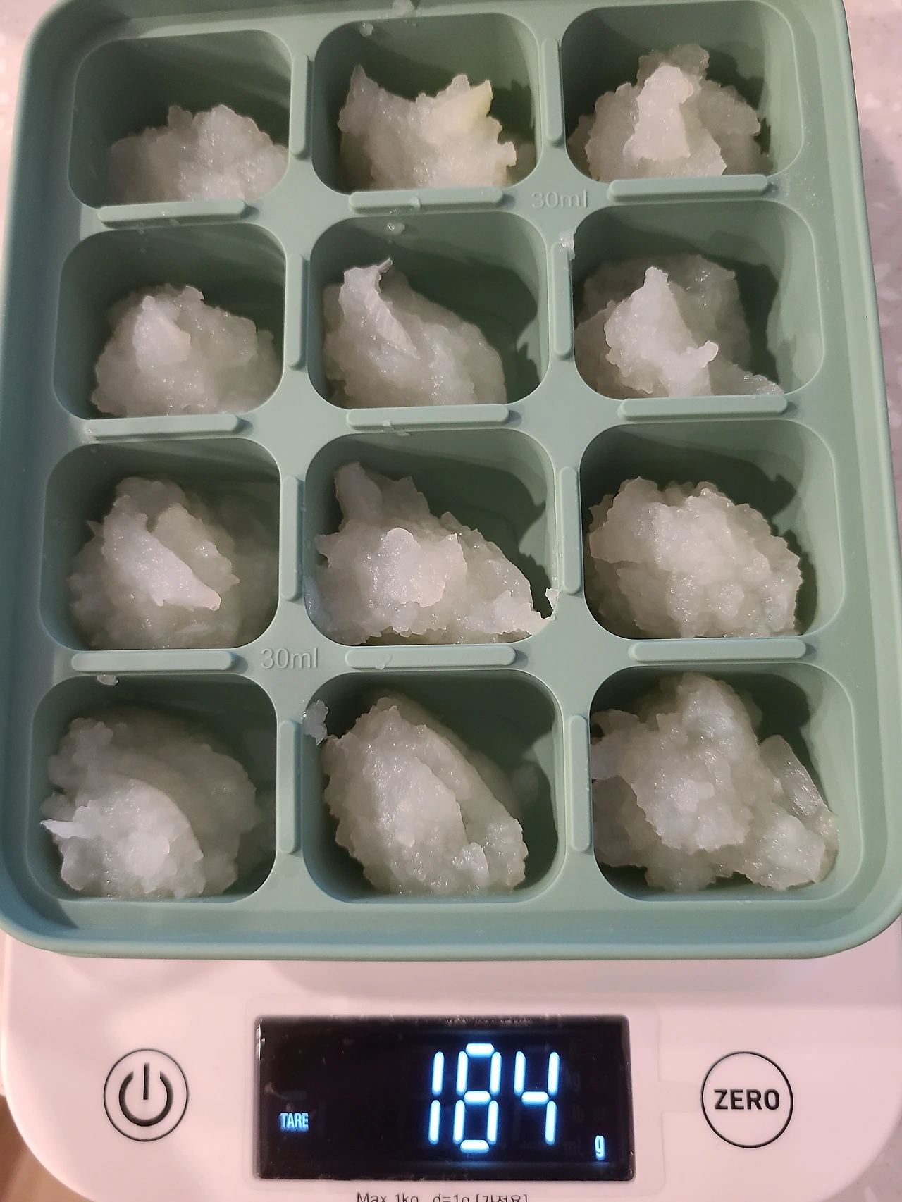 15g씩 16개 큐브 완성. 손실이 거의 없는 것 같다.