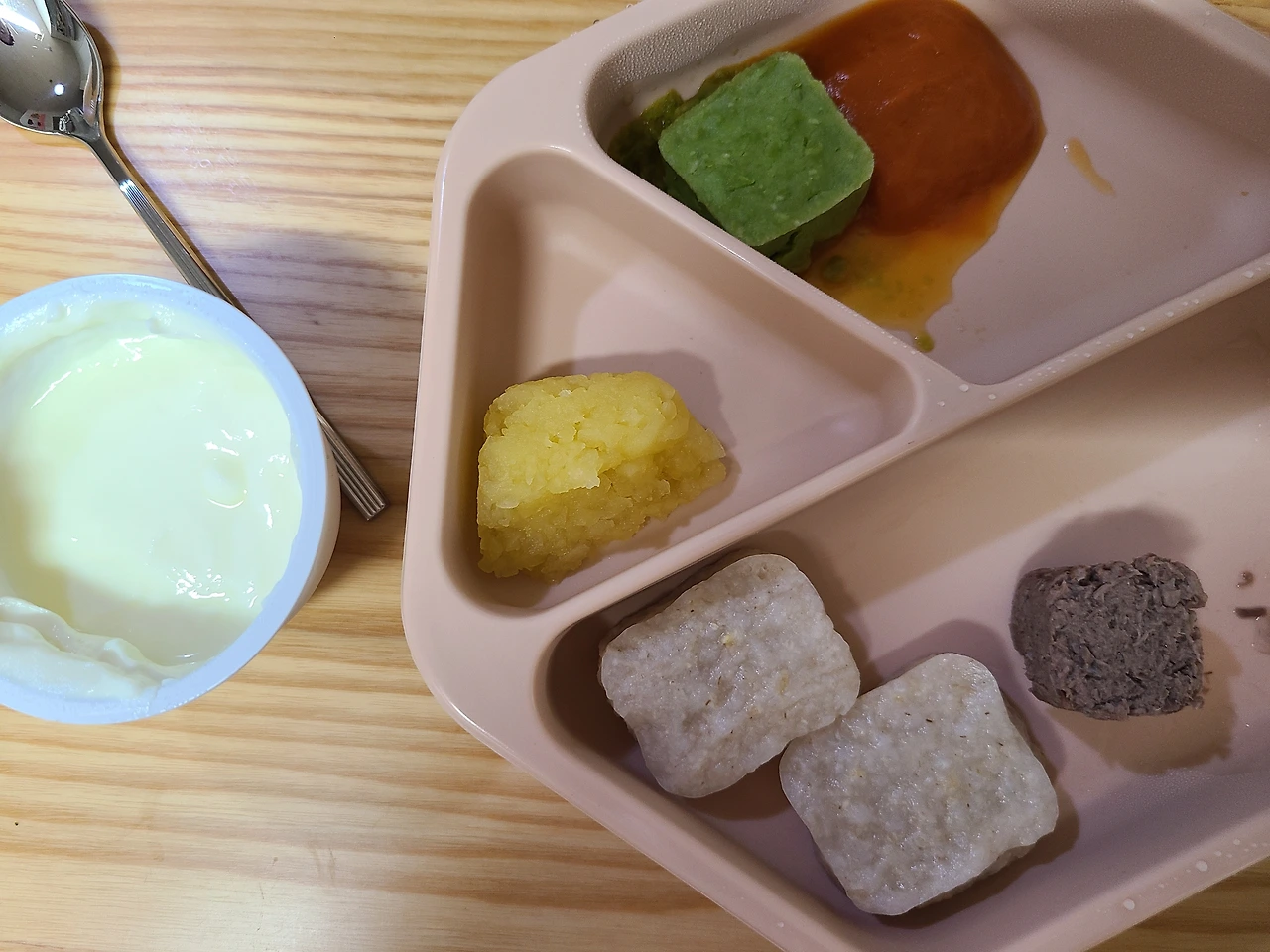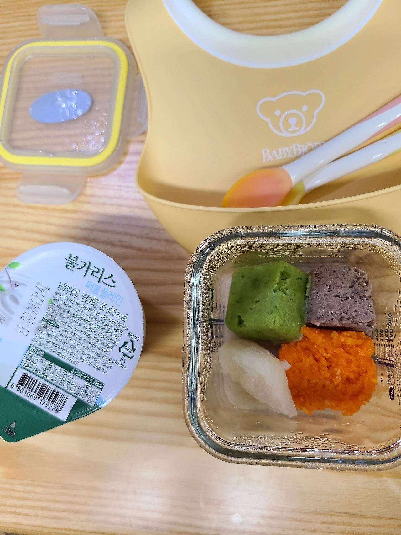 요거트는 아직 안 주는데 사진에 있는 이유는 아기 먹을 때 내 점심까진 못 차려도 엄마 먹는 모습 보여주려고 준비하는 것.