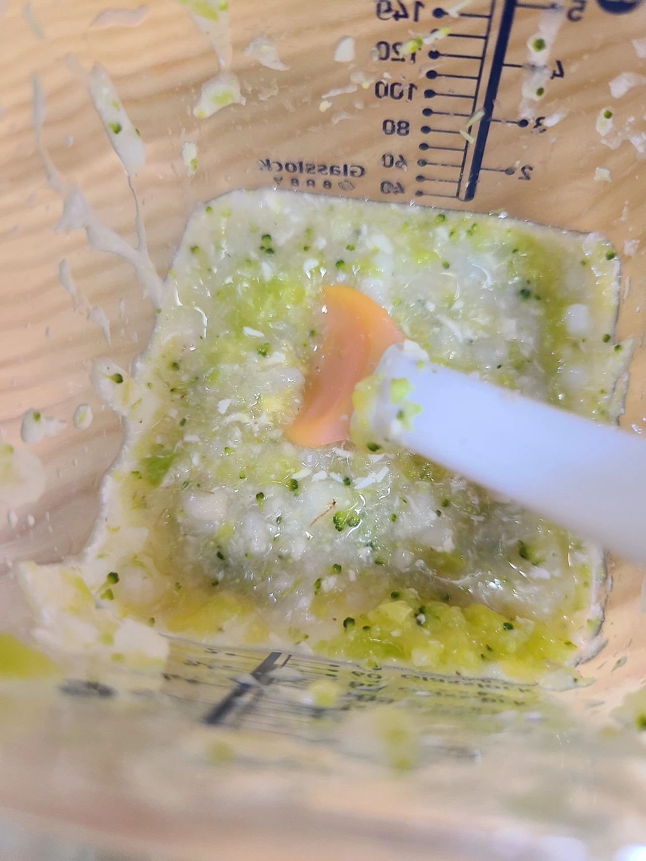 오후 이유식도 잘 먹는 듯 해서 오전이랑 양 맞춰 줌. 대략 110~120g 정도 되고 이번 베이스죽 끝나면 베이스죽 양을 60g으로 늘리고, 고기 끝나면 고기양은 20g으로 늘려서 양 늘릴 계획.
