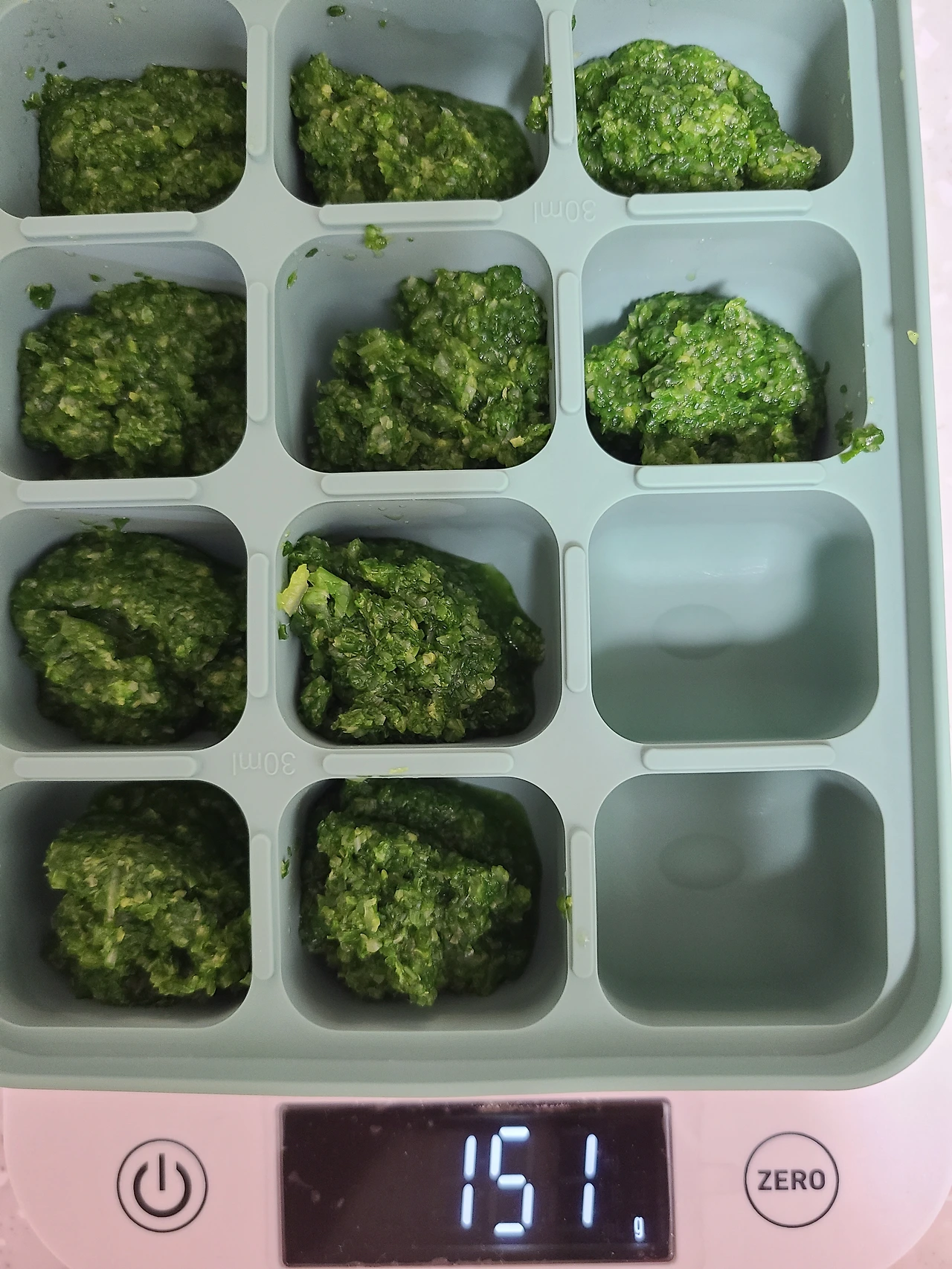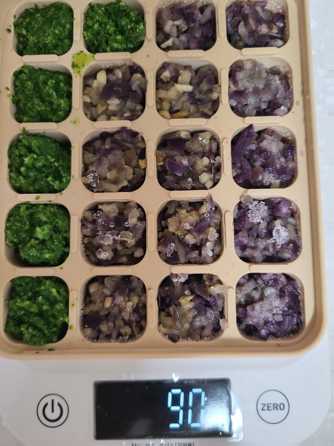 4) 15g씩 소분, 16개 큐브 완성.