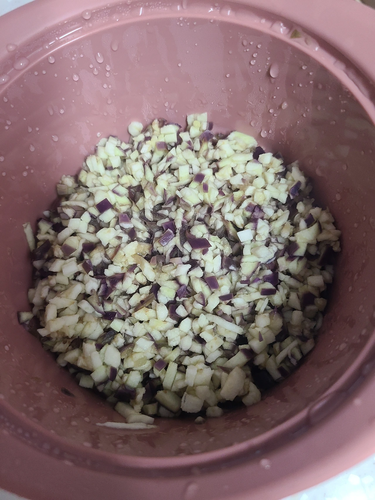 2) 가지를 다른 채소처럼 익힌 다음에 갈아 버리면 특유의 질감 때문에 완전히 죽이 되어 버리며, 그래서 너무 오래 익히는 것도 추천하지 않는다. 적당한 크기로 썰어 준비한 후에 찐다.