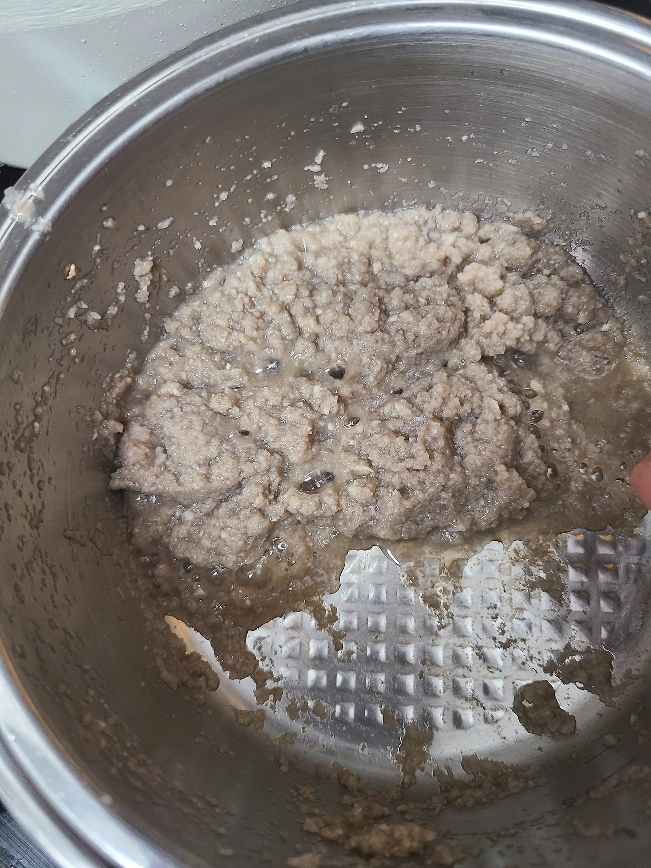 4) 다진 양송이를 냄비에 볶는다. 전자렌지에 돌려 쪄도 되는데, 이렇게들 하길래 나도 따라 했다. 풍미가 더 살아나려나?