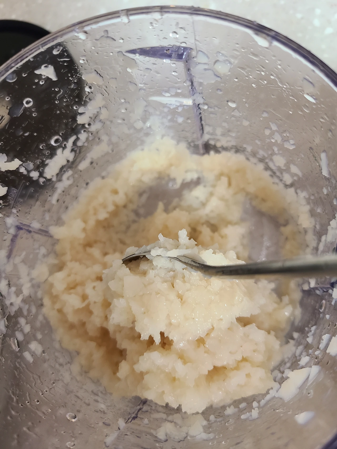 2) 초퍼에 갈아 준다. 갈고 나서 보면 끈적이는 점액도 조금씩 나오는 걸 알 수 있다.