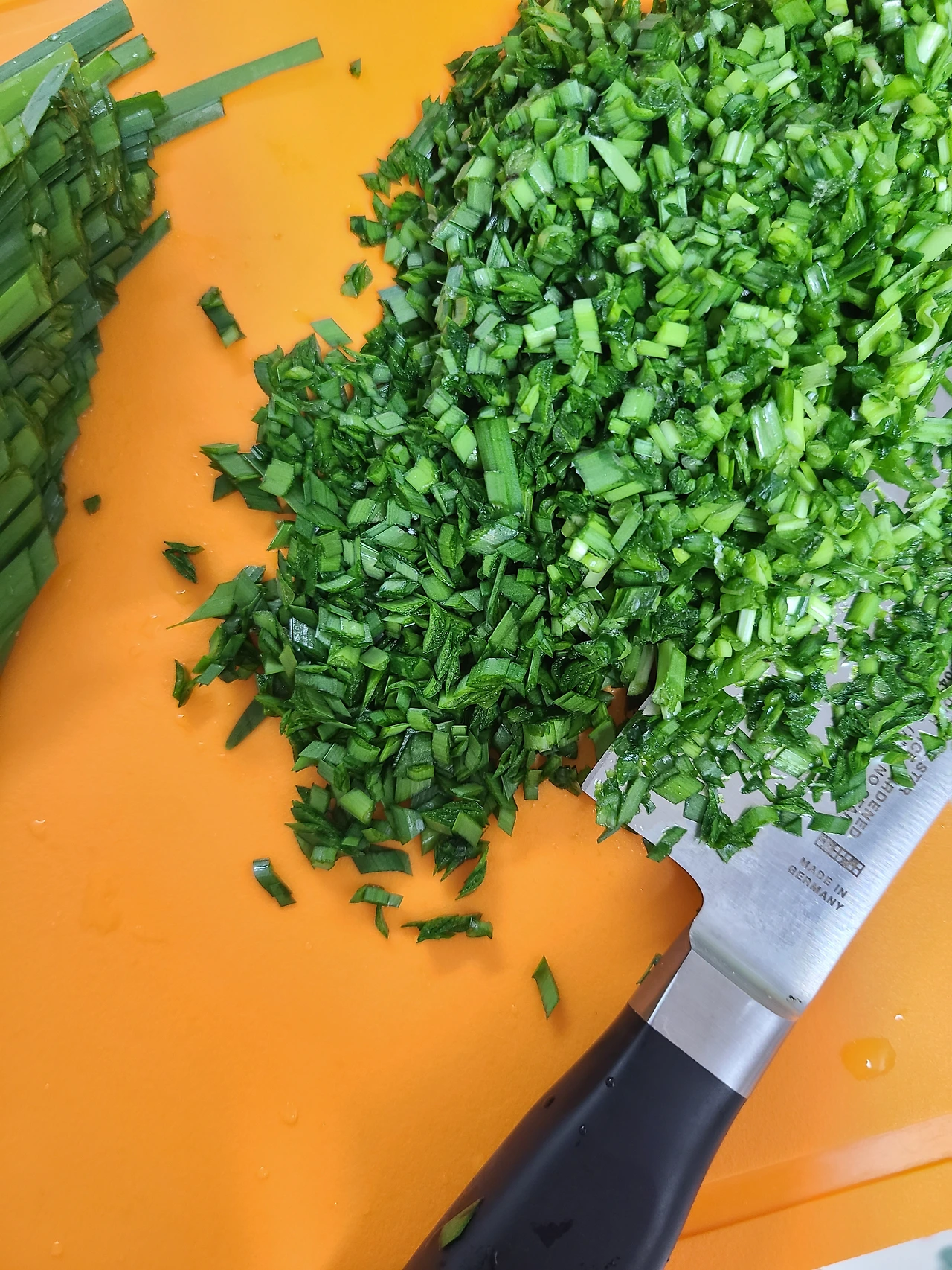 최초의 향채였던 양파는 전혀 거부감 없이 잘 먹어주고 있고, 티 안나게 육수낼 때 대파도 써 봤다. 이제 세 번째 향채인 부추 도전.200g 부추가 2,480원.