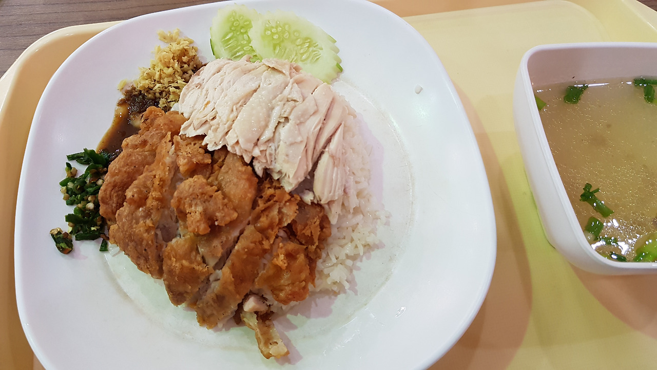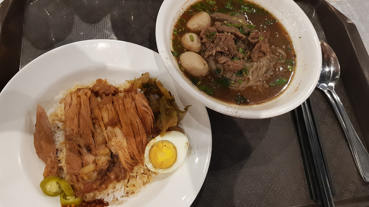 빅씨 푸드코트의 카오소이와 치킨라이스.