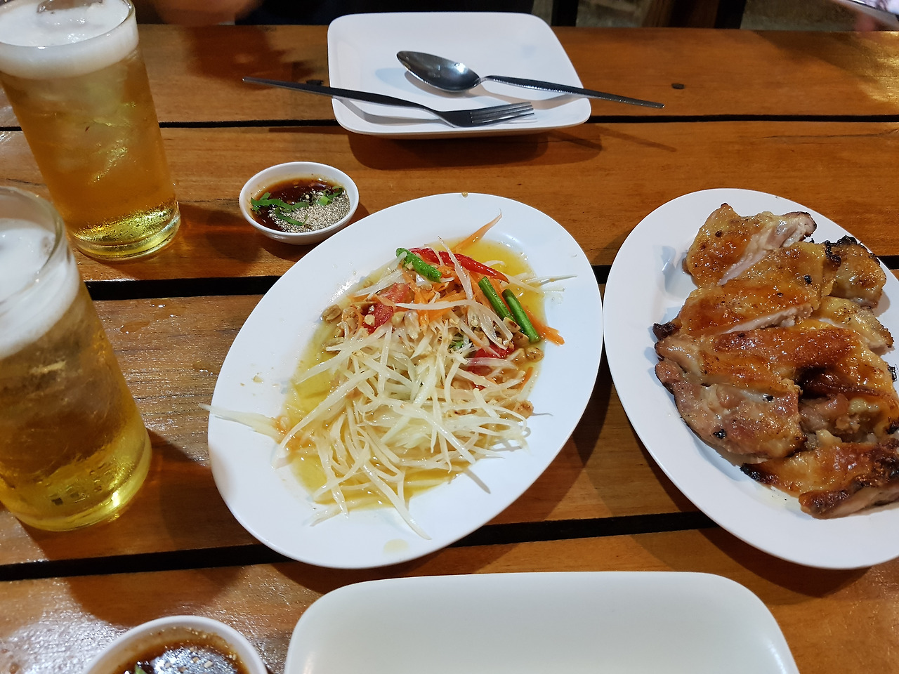 청도이 로스트 치킨 : 뭔가 구운 고기를 먹고 싶어서 저녁을 해결하러 간 곳. 다양한 국적으로 보이는 손님들이 많았던 곳이다. 쏨땀과 구운 치킨, 그리고 맥주를 함께 하니 금상첨화였다. 명성에 걸맞게 실망시키지 않았던 식당.