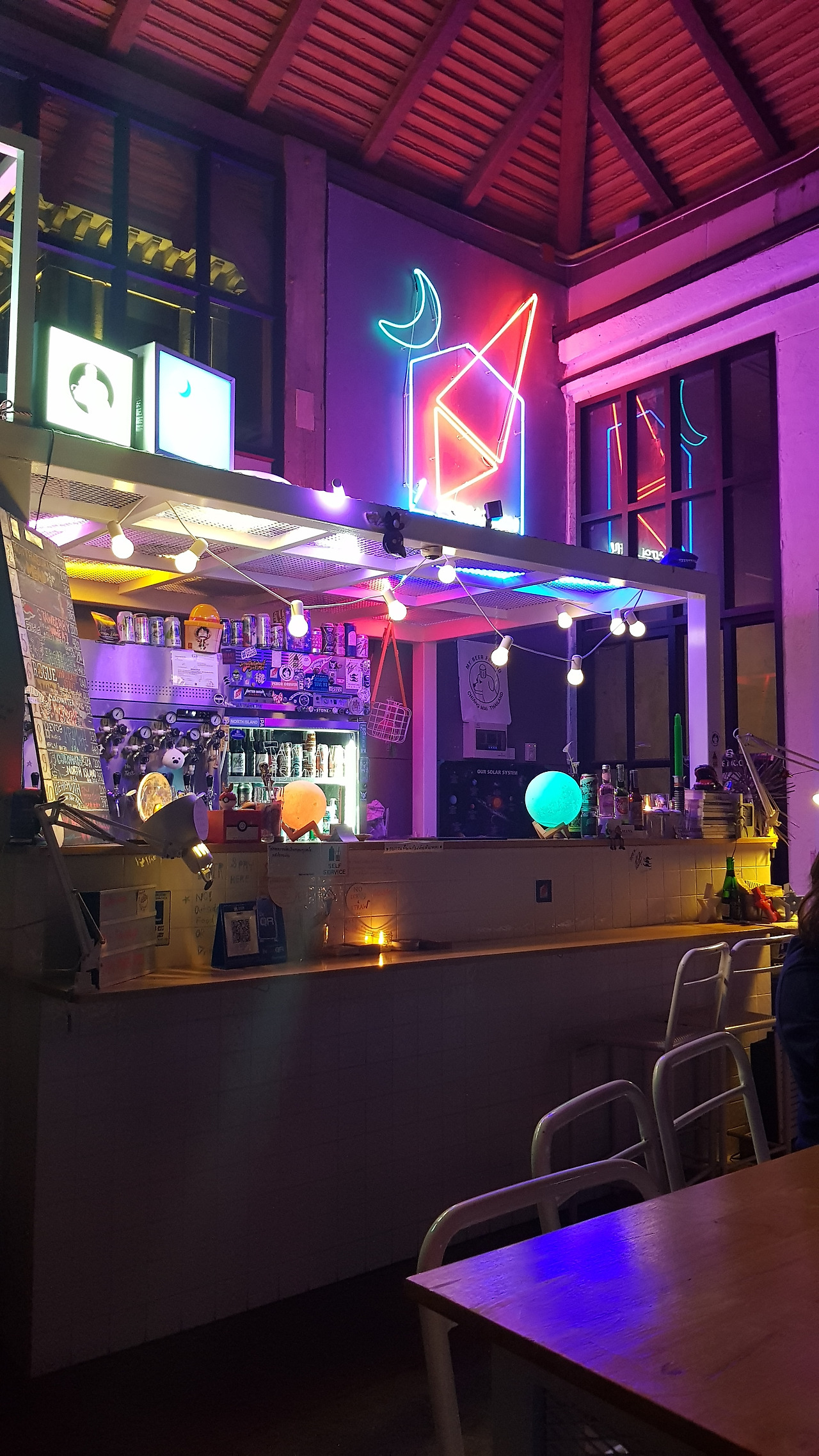 ★Parallel Universe of Lunar 2 on the Hidden Moon : 원님만 꼭대기에 있는 아주 길다란 이름의 작은 맥주집. 하루키의 소설 '1Q84'가 연상되는 이름이다. 안주류는 많지 않은데 같이 딸려 내오는 포테이토칩이 너무 맛있어서, 그 이후로 마트에 갈 때마다 비슷한 걸 찾아봤지만 못 찾았다. 물어볼 걸. 생맥주 리스트 2번에 있던 태국 꿀맥주가 아주 맛있었다. 테라스 좌석에 앉으면 님만해민의 야경을 한 눈에 볼 수 있는데 건물에서 툭 튀어 나온 구조라 약간 다리가 떨린다. 치앙마이 여행 중 최고로 낭만적이었던 곳. 식당은 아닌데 카페는 더더욱 아니므로 추가.