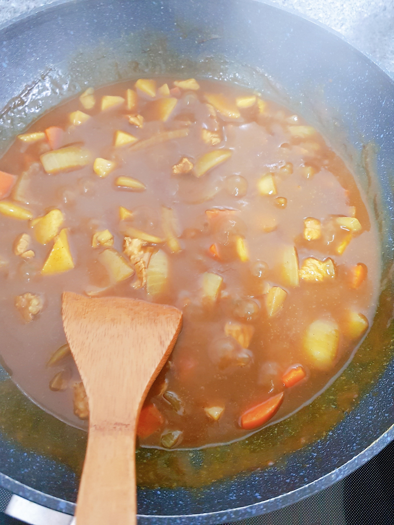 카레는 의외로 만들기도 쉽다. 레토르트 카레는 잘 안 먹으니 고형분이나 가루 형태의 카레로 설명하면, 당근, 감자, 양파 등을 주사위 모양으로 썰어 넣고 기름과 후추에 함께 볶는다. 제일 느리게 익는 당근을 기준으로 채소들이 익어가는 것 같으면 물을 자작하게 붓는다. 이 채소들이 노릇노릇 냄새를 풍기는 육수가 되기 시작하면 고기를 같이 넣어 익혀준다. 고기를 같이 볶고 물을 부었어야 하는지 조금 헷갈린다. 아무튼 재료들이 모두 익어가면 쪼개 놓은 고형 카레나 가루 카레를 부어서 골고루 저어 주면 된다. 당근이 푹 익을 때까지, 고기가 부드럽게 익을 때까지, 그리고 바닥이 눌어붙지 않게 인내심 있게 졸이면 된다.