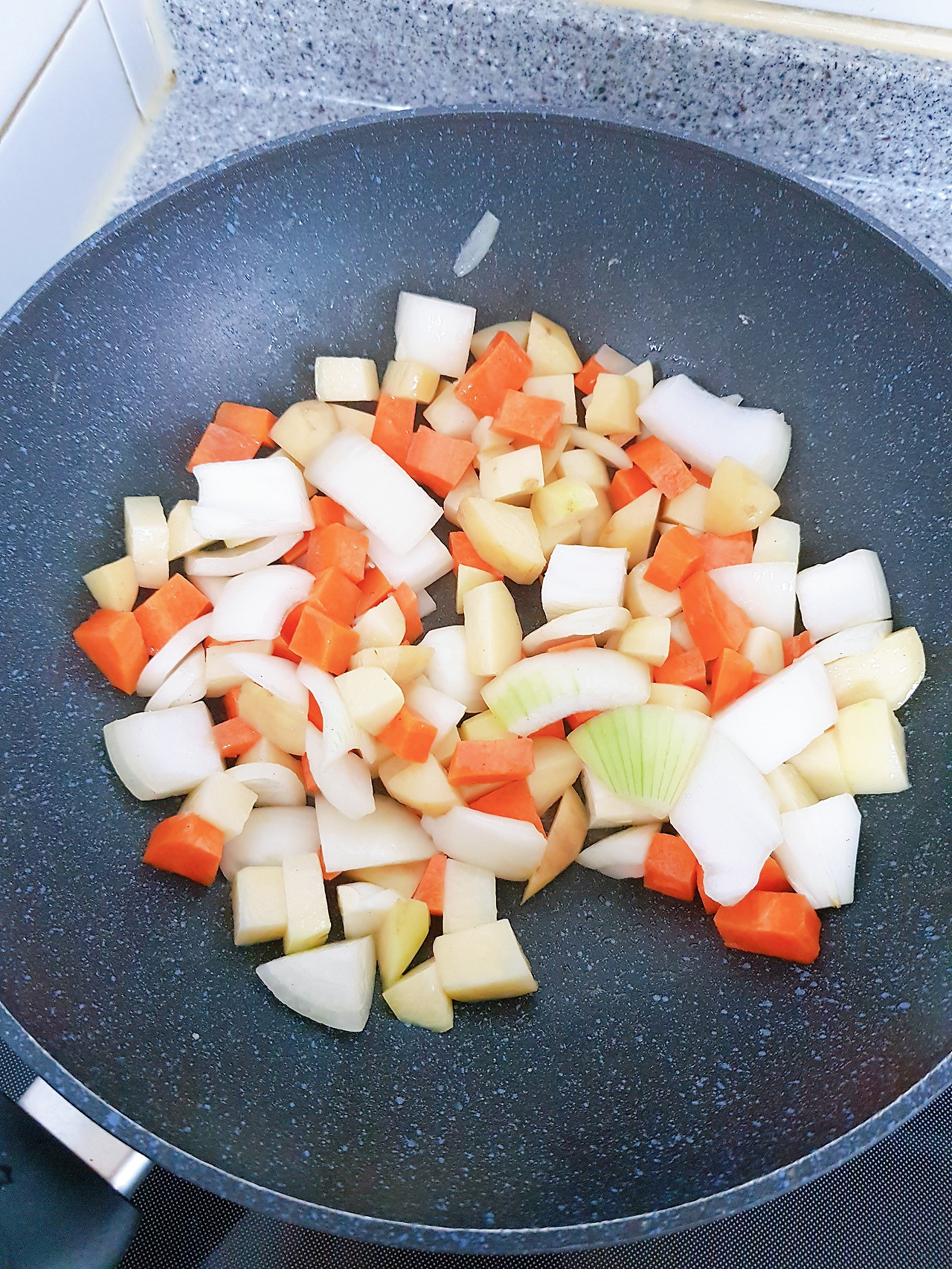 오늘은 꼭 한번 가 보고 싶었던 집 근처의 쌀디저트 카페에 다녀와서 저녁 식사를 준비해 본다. 메뉴는 카레라이스, 재료는 모두 준비되어 있다.