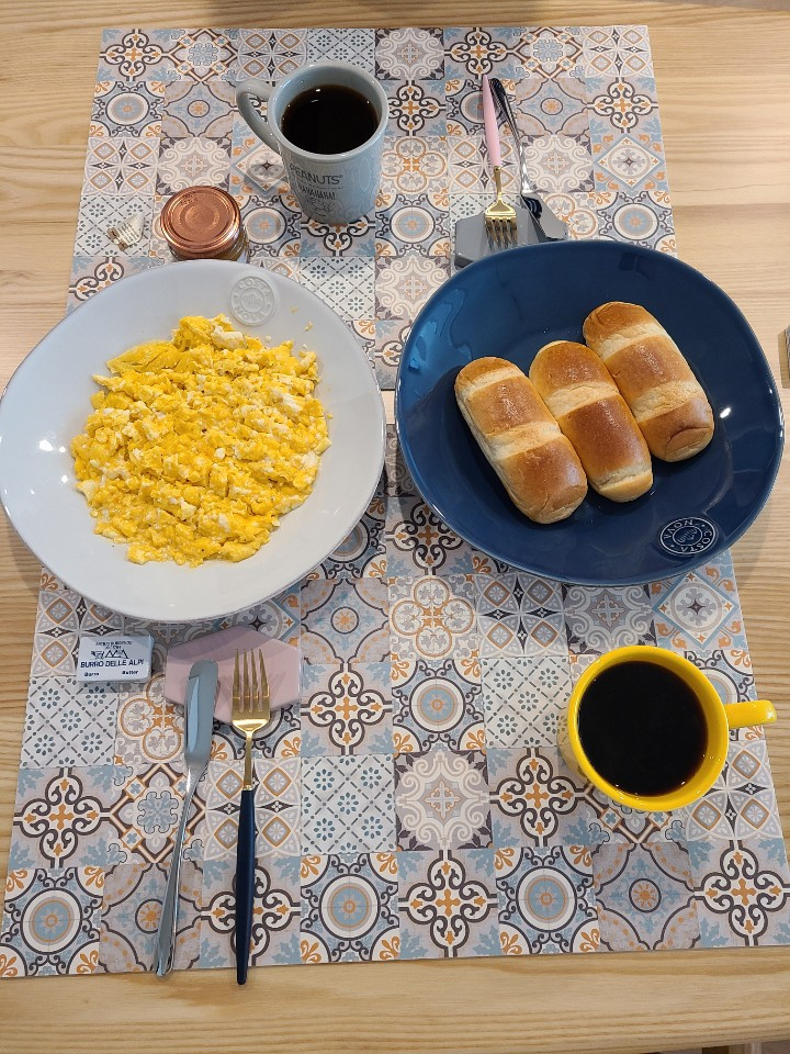 J가 아침으로 스크램블에그를 해 줬다. 에그스테이션 최애 메뉴.