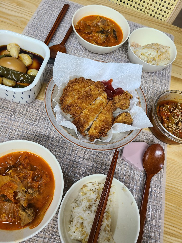 좀 부지런을 떨어서 달걀 장조림과 돼지김치찌개를 해서 저녁 상을 차려줬다.