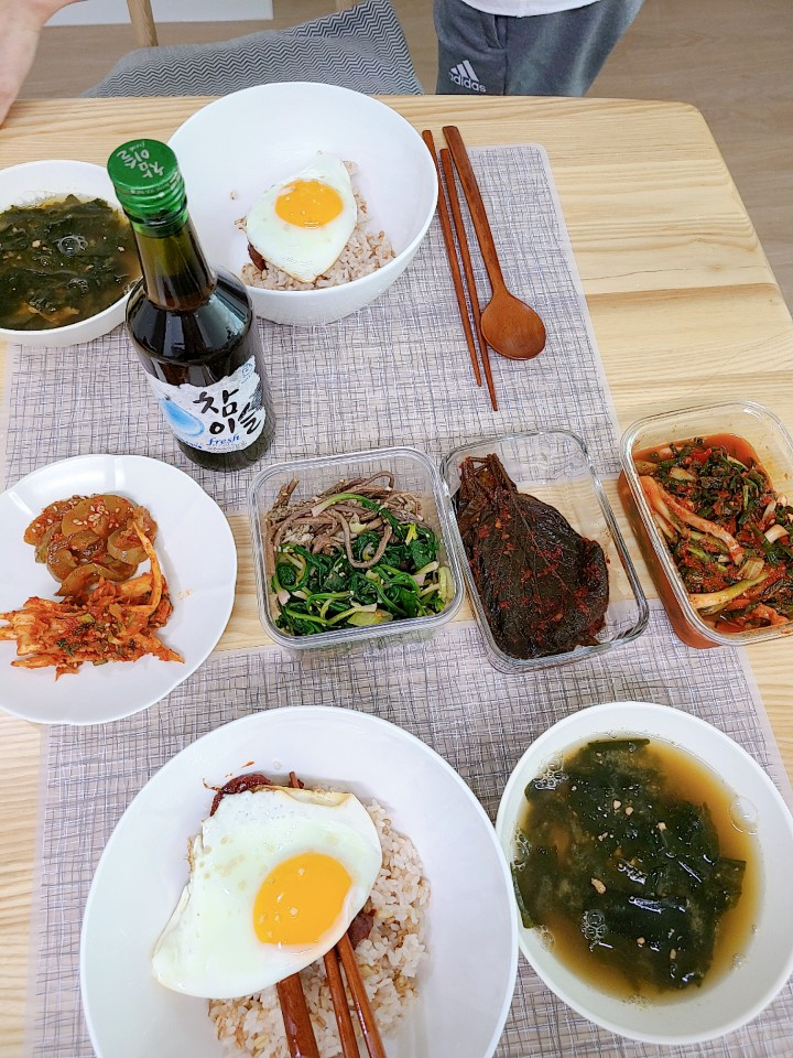 나물 반찬을 때려 넣고 셀프 메이드 비빔밥으로 점심을 해결.