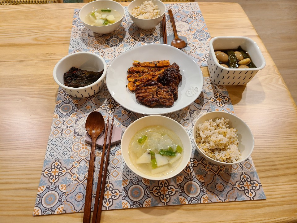 양가 부모님 덕을 보는 식사 차림.