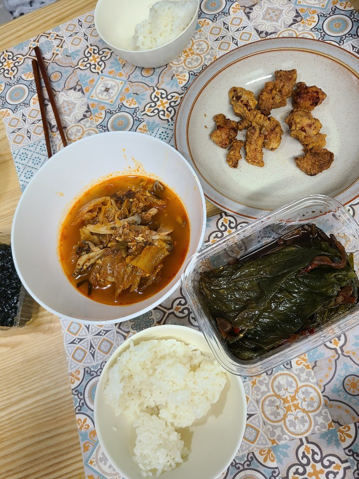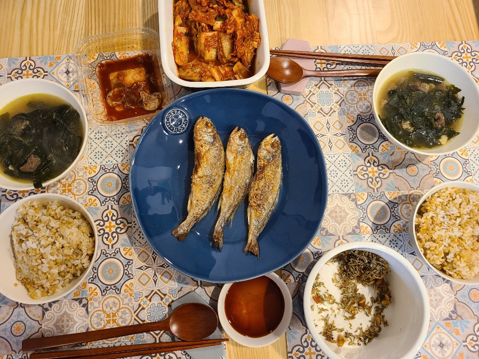 참치김치찌개와 노브랜드 가라아게 털이. 친정집에서와 다르게 우리집에서는 에어프라이어가 주 3회 이상 열일 한다. 저녁에는 해동한 굴비를 굽고, 역시 같이 해동해 둔 소고기를 넣어 미역국을 했다. 살다 보면 금새 냉동실이 꽉 찬다는 결혼 선배들의 이야기를 실감 중이다.