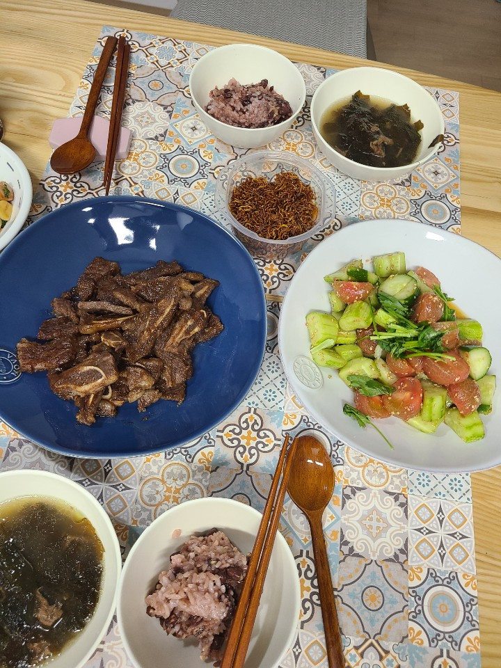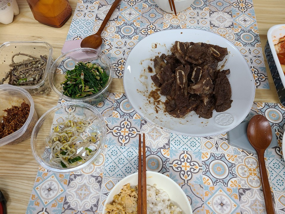 LA갈비 털이. 함께 줄어가는 나물 반찬들.
