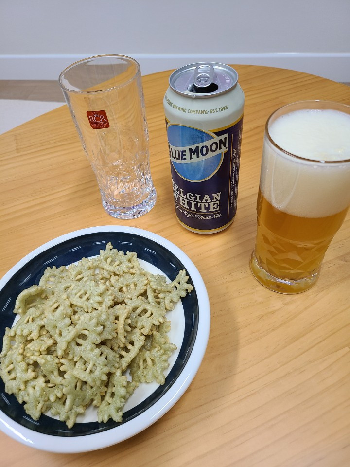 2020년 마지막날 저녁, 짜장라면에 차이797의 칠리 중새우를. 여기는 가격은 비싸지만, 냉동식품임에도 튀김옷을 제대로 만든다는 명확한 장점이 있는 것 같다. 내 최애 블루문 맥주와 꽃게랑 와사비맛을 야식으로.