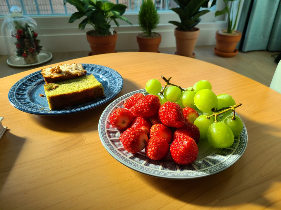 망원시장에서 산 달콤한 딸기와, 샤인머스캣.