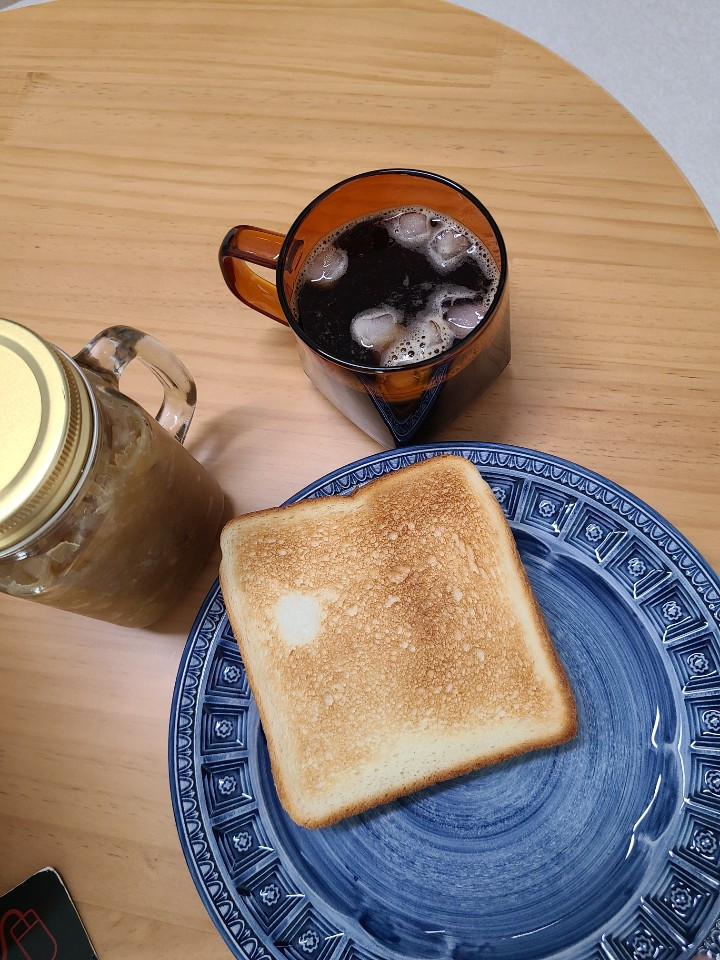 홈메이드 사과잼을 얹어서 토스트. 상미종 식빵은 훨씬 쫄깃하구나.