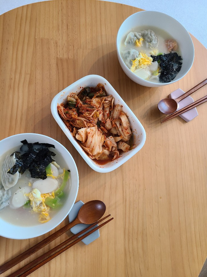 드라마 정주행 하면서 떡만두국을 끓여 먹음. 비비고 사골육수 만세. 비비고 만두 만세. 쉽고 간편한 세상 만세!