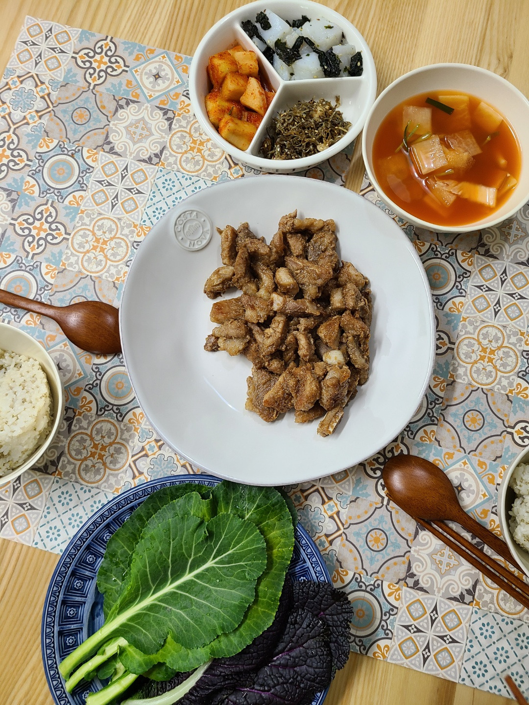 어머님이 재워 주신 돼지갈비를 점심으로 한 판.
