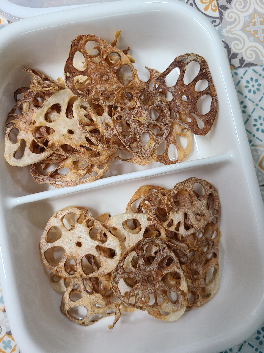 연근이 실컷 남아서 반은 연근피클을 만들고, 남은 반은 얇게 썰어 에어프라이어에 돌렸다.