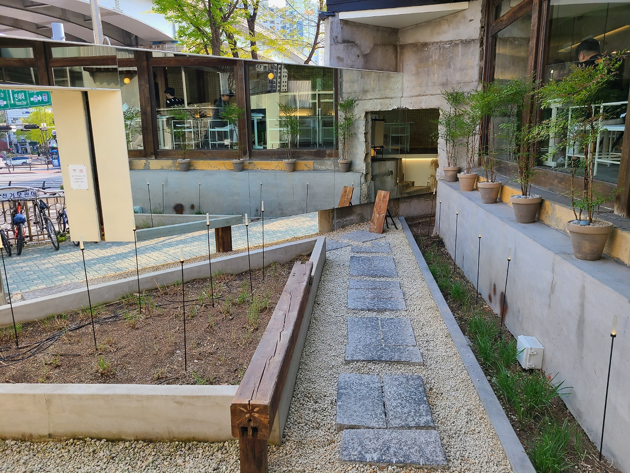한참을 내려와 달달한 라떼 한 잔 절실했는데, 사직동 ~ 독립문 라인에 좀 유명하다는 카페는 다 만석이었다.
