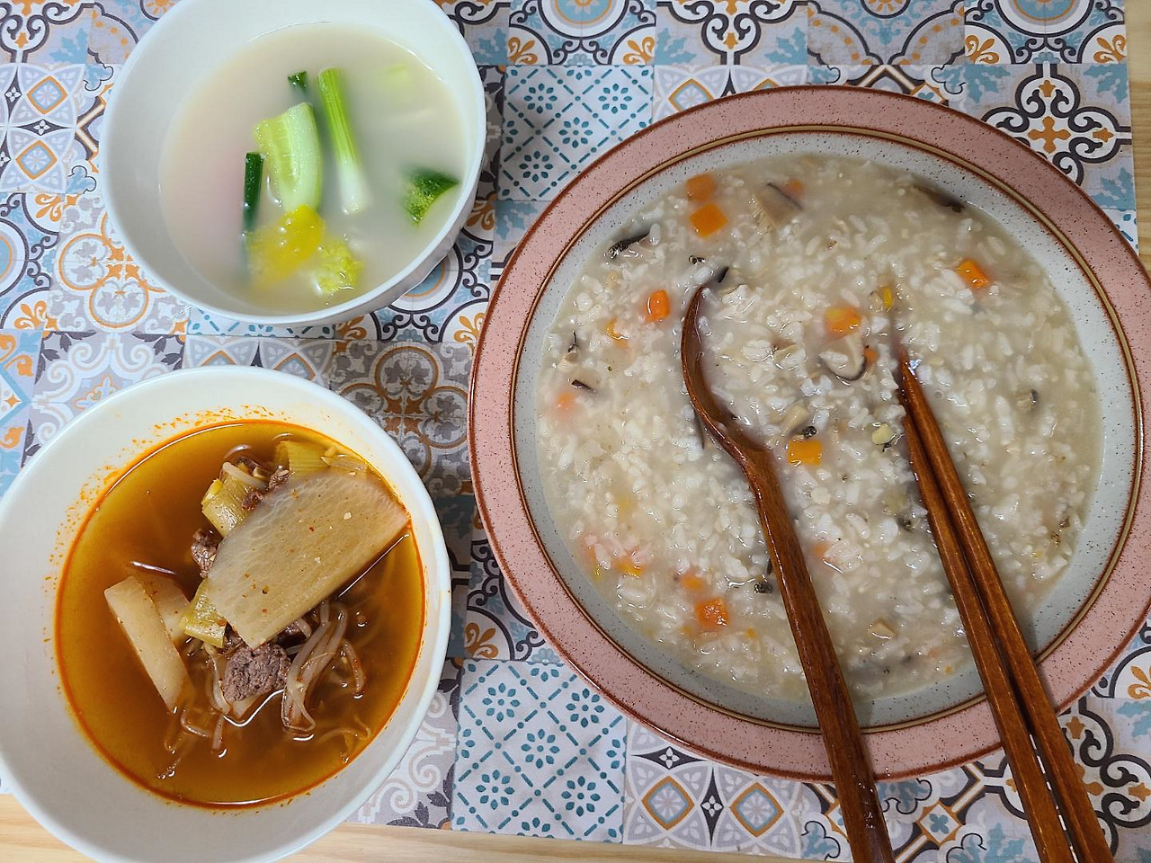 경상도식 소고기뭇국, 또는 우리 엄마식 육개장 쯤으로 타협 될 것 같은 뭇국을 한솥 끓였다.