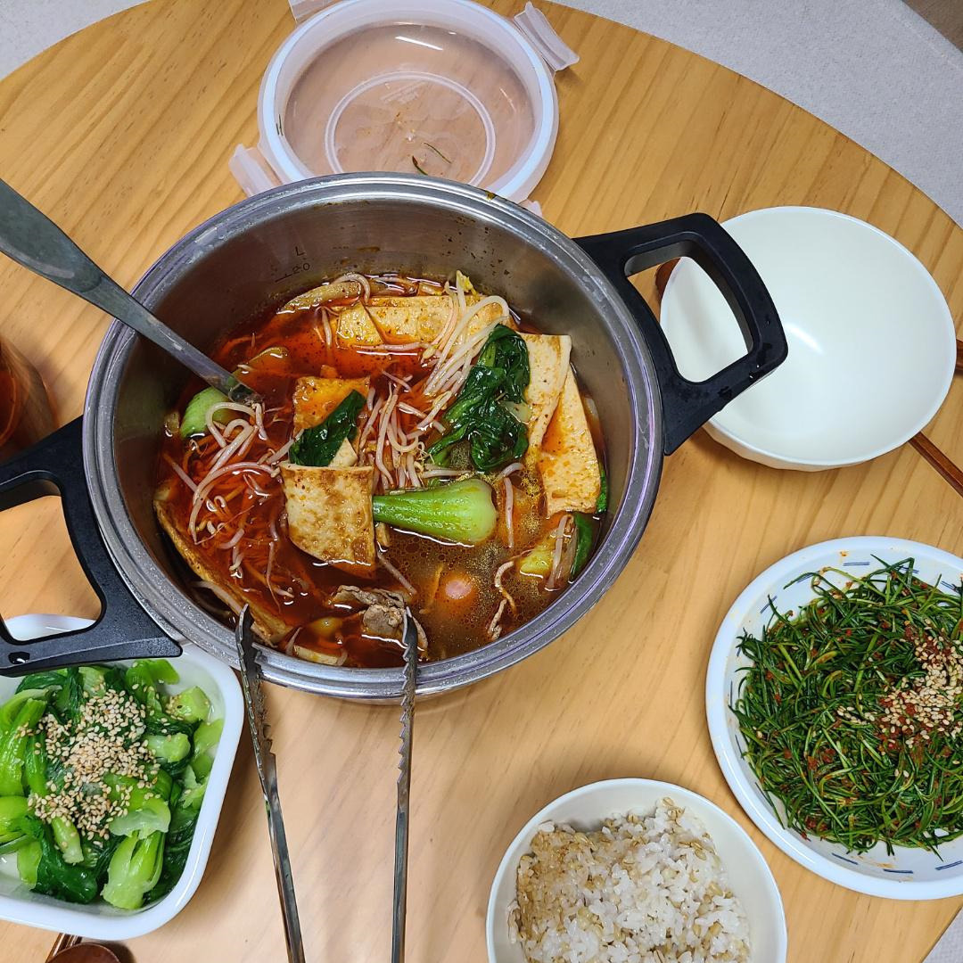 이거 해 먹으려고 전날 푸주를 실컷 불려놓고 안 넣어서, 뒤늦게 넣고 다시 끓여 먹었다. 너무 맛있다.