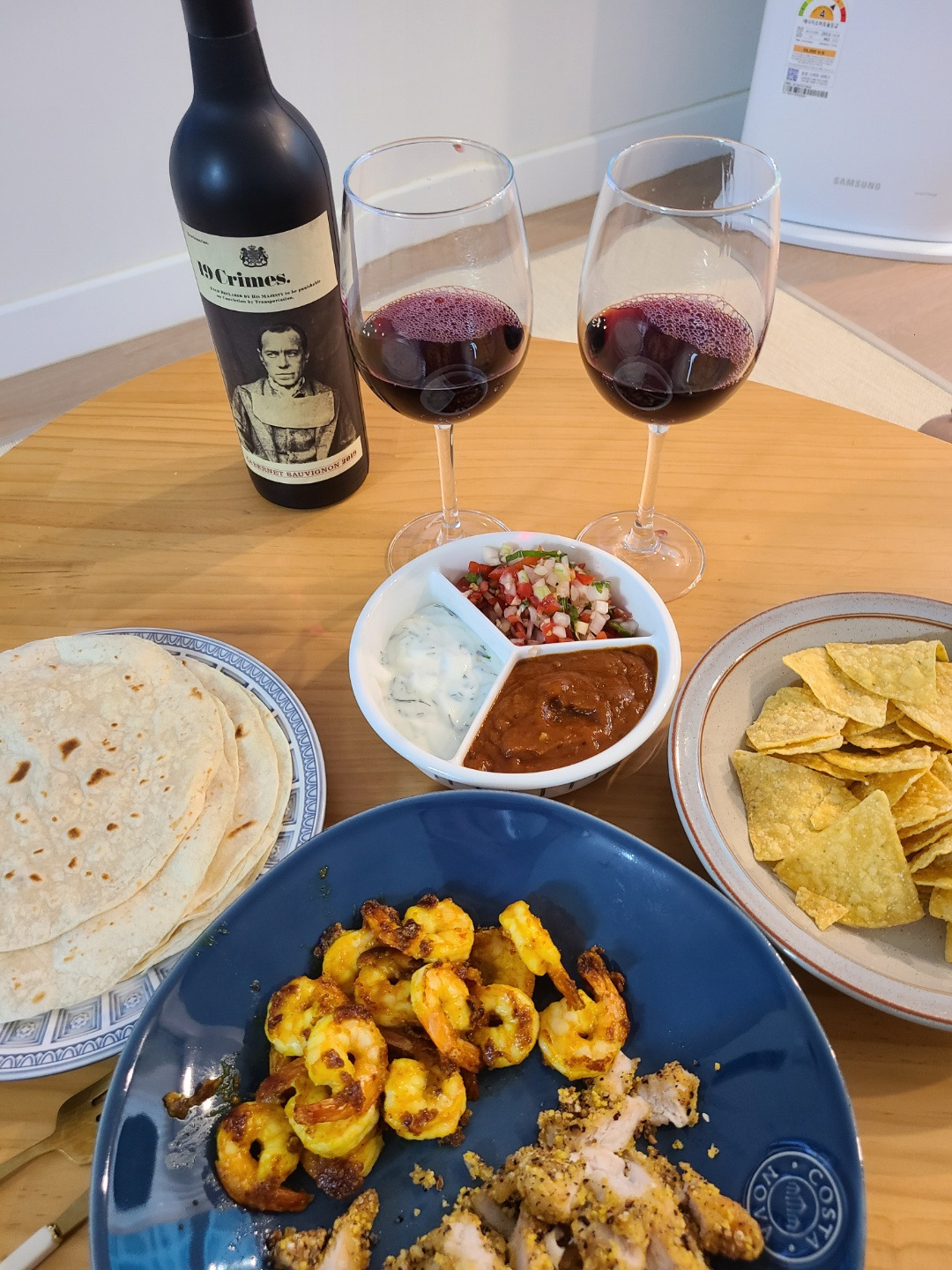청양고추와 허브를 많이 쓴 매콤한 피자에 이탈리아 와인, 아쉬우니까 후식으로는 우유튀김을.