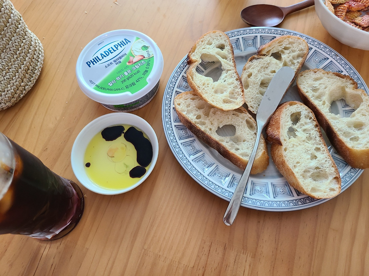 아침으로는 바게트에 올리브오일을 찍어 먹고, 점심으로는 요즘 SNS에서 핫하다는 레시피를 따라 했다.