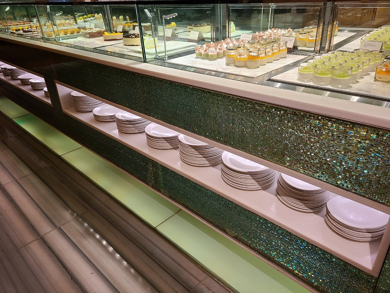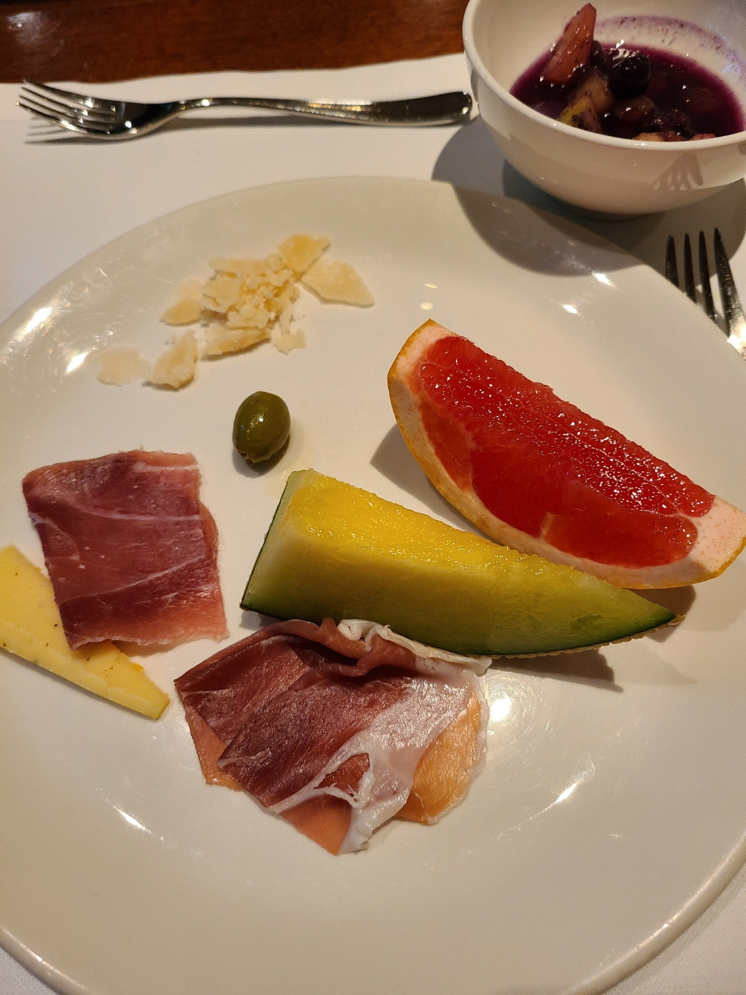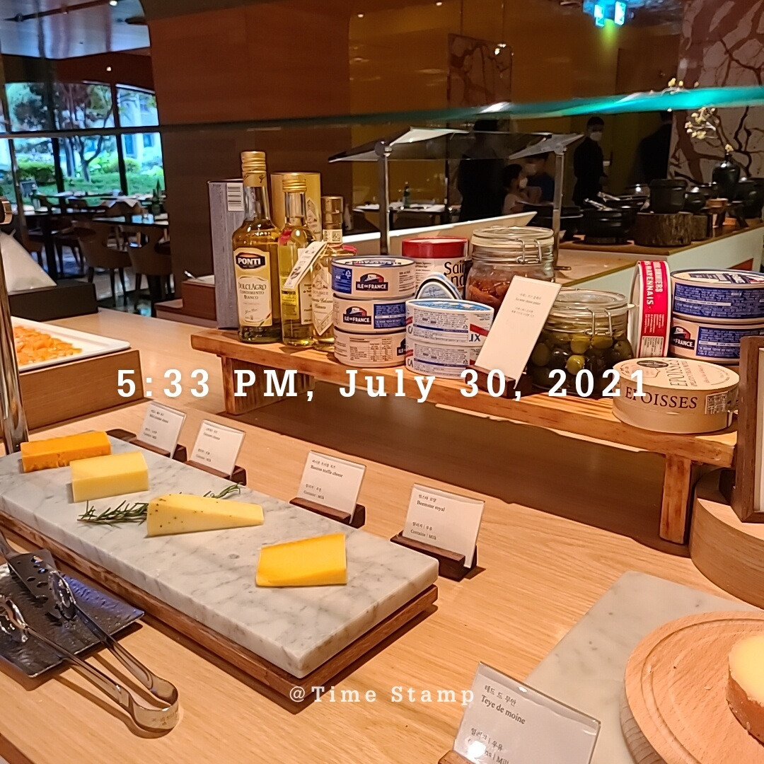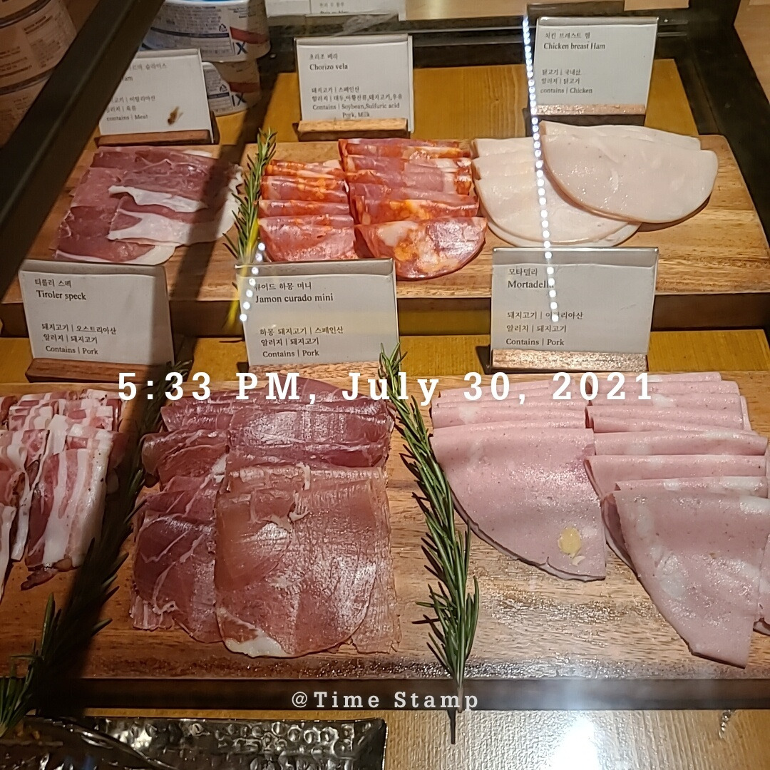 호텔 뷔페를 많이 가본 건 아니라, 아무튼 라세느는 지나칠 정도로 친절하니 오히려 내가 미안한 느낌이 들 정도였다. 메뉴를 가져올 때는 사진을 많이 찍지 않아서 이 정도만, 햄과 치즈 코너가 너무 좋았다. 통째로 깎아주는 파르미지아노 레지아노 치즈도 실물을 처음 봤다. 이 코너에서 가져온 것만 먹으면서 한 시간은 보낼 수 있겠다 싶었다.