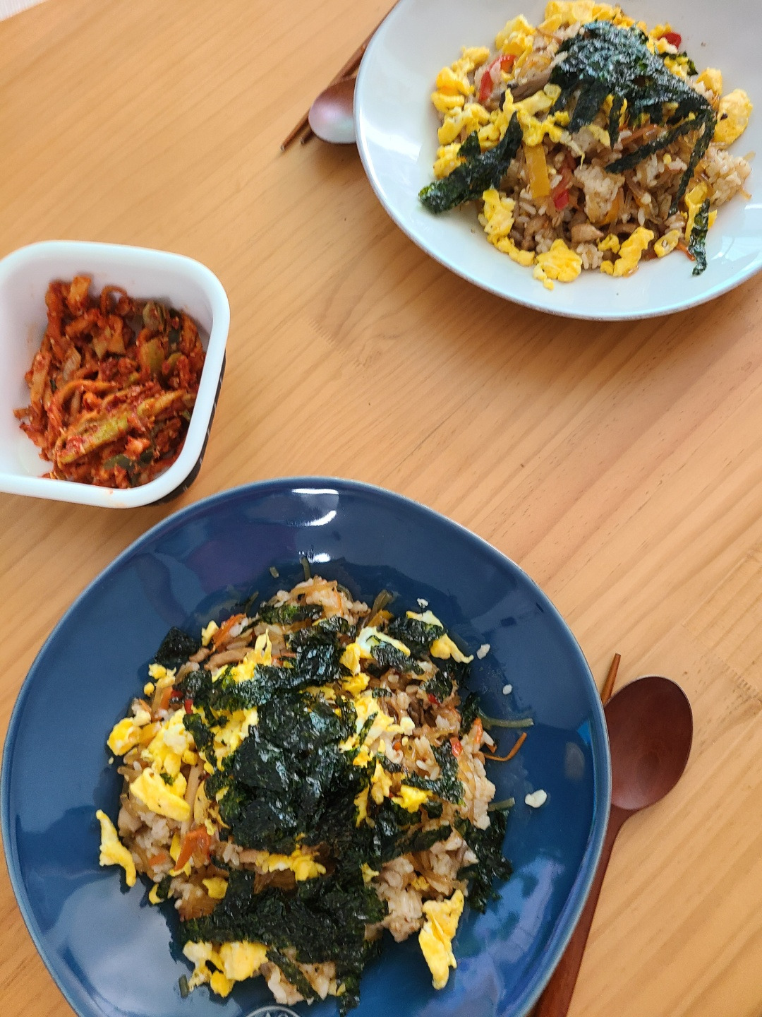 남은 잡채로는 잡채 볶음밥을. 어쩌다 보니 나는 말만 꺼내고 J가 볶아 줬는데, 대학 시절에 정문 앞 후미진 곳의 식당- 배꼽시계 -에서 팔던 잡채볶음밥이 생각나서 그랬다. 엄지척!