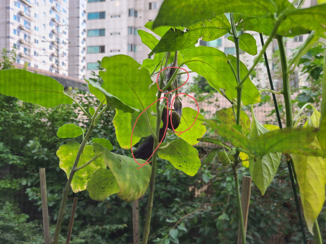오후에는 베란다에 나가서 오랜만에 낮의 풍경을 봤는데, 가지가 3개째 발견됐다.