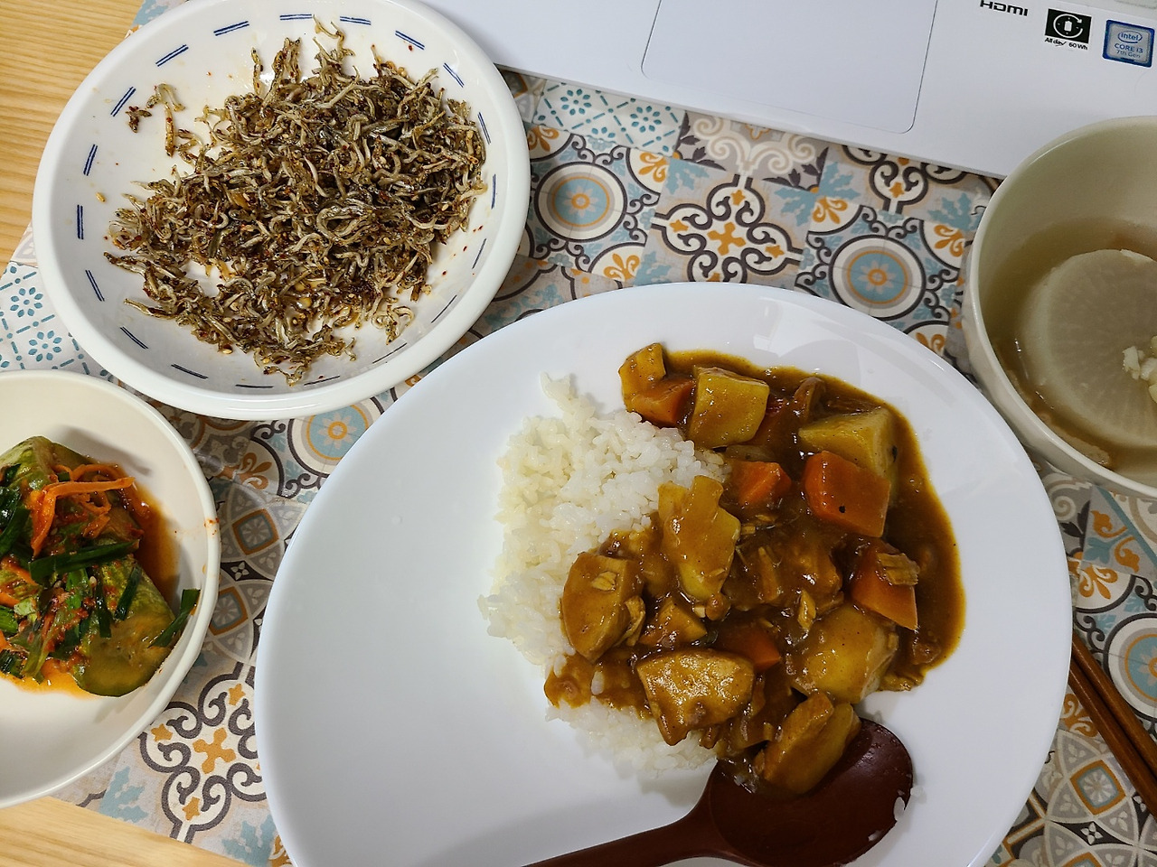 요즘은 많은 날 J의 퇴근이 나보다 빨라서, 닭가슴살이랑 당근, 감자를 썰어서 카레라이스를 만들어 놓았다.