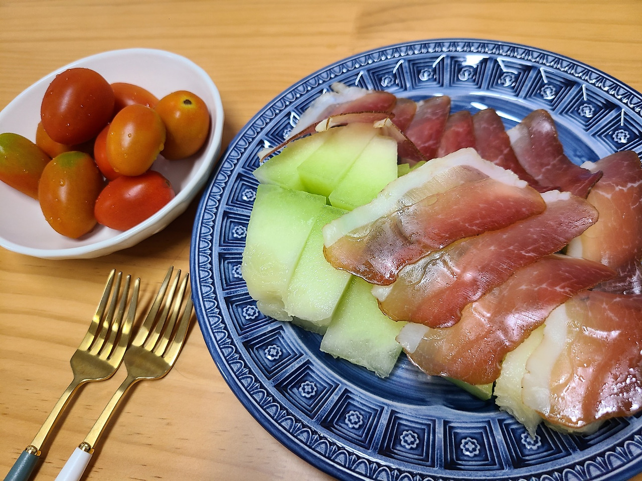 그렇게 치킨을 먹어 놓고, 저녁에 마트에서 프로슈토를 집어와서 메론에 얹어 먹었다.