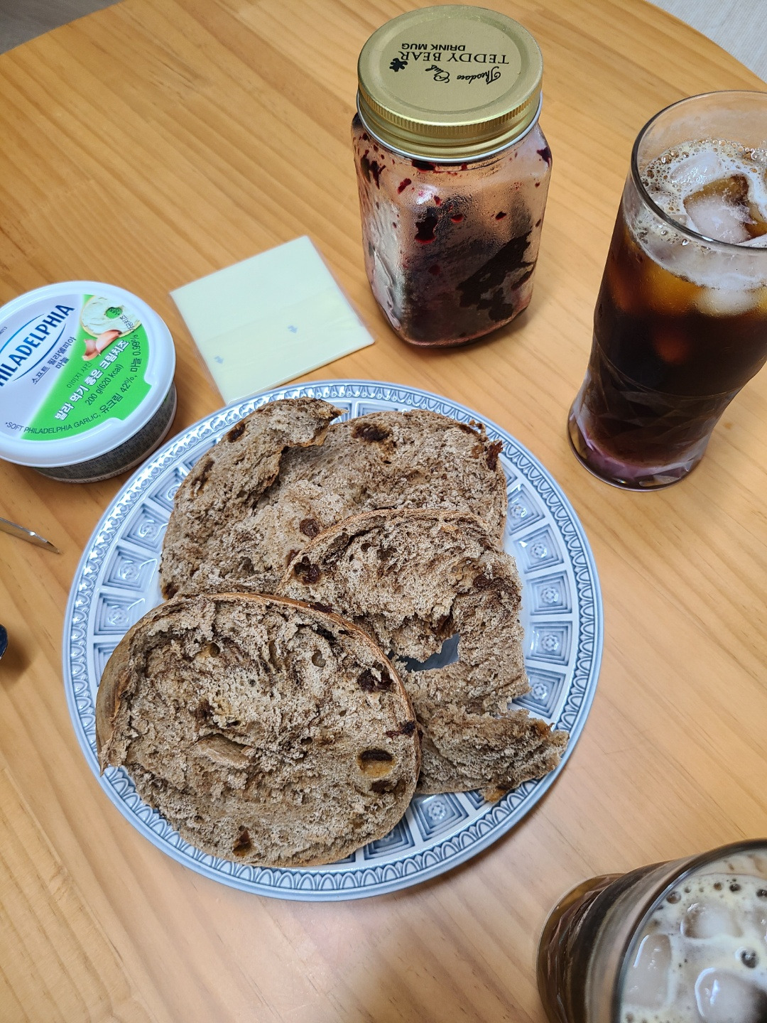 냉동실에서 잠들어 있던 시나몬베이글을 꺼내어 아침식사.