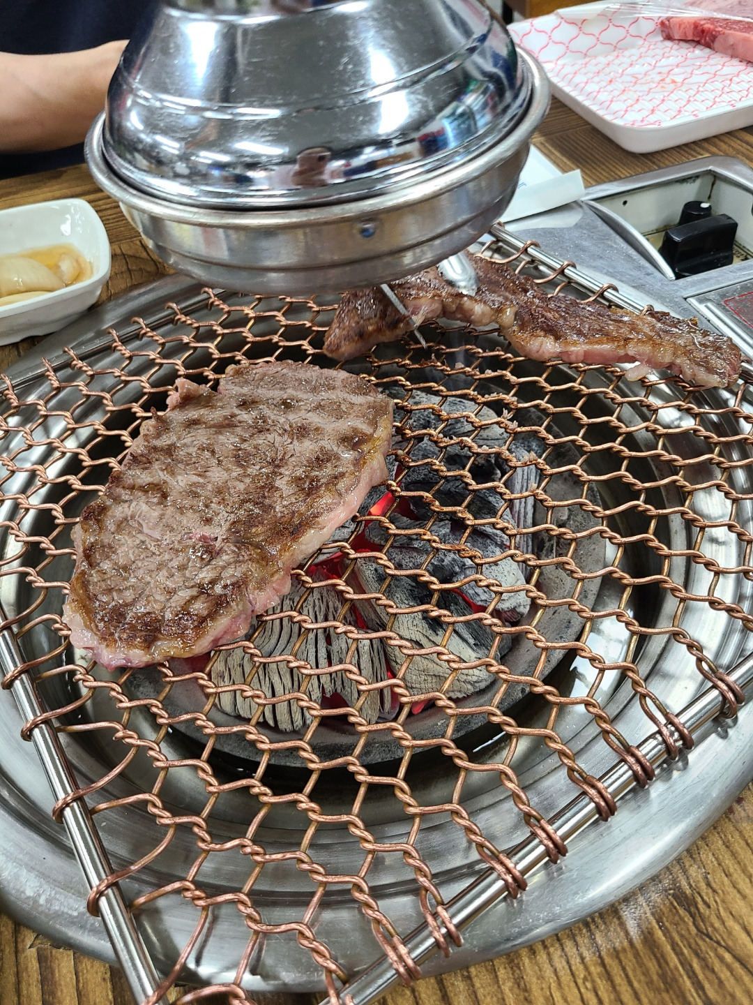 반원 모양으로 둥그렇게 기름이 붙어 있는 위쪽 부위가 기름지고 고소했고, 그 아래 부위는 좀 더 살코기가 많고 씹는 맛이 좋았다. 다만 소고기는 역시 많이는 못 먹겠다.