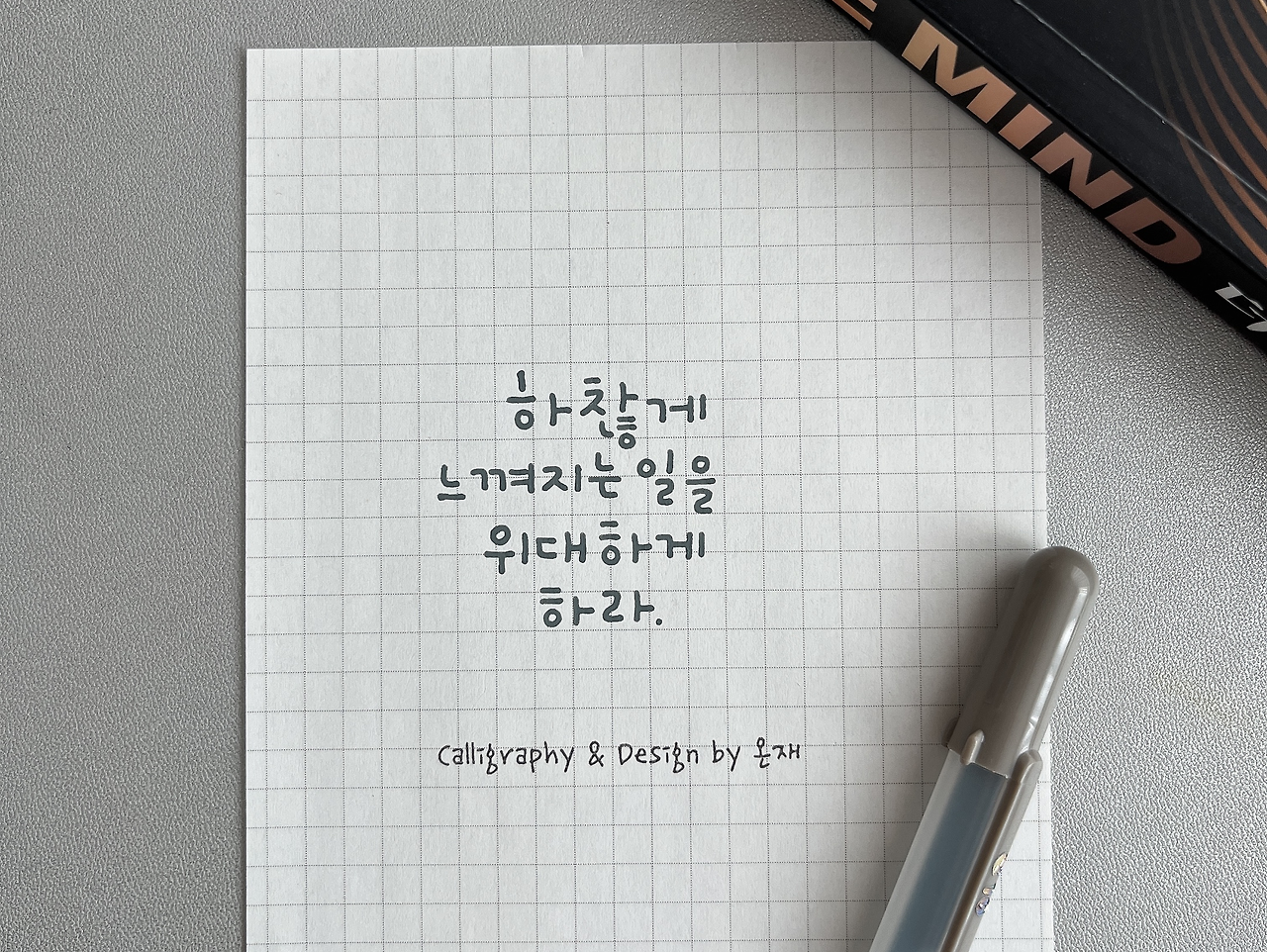 가까이 있는 듯 하지만 멀어 보이고, 먼 나라 이야기 같지만 손에 잡힐 듯 가까이 있는 것. 캘리그라피를 통해 만난 많은 사람들과의 대화 속에서 느낀 것들이다. 단체 수업에서 꼭 하는 질문이 있다. 사람들이 얼마나 알고 있는지 떠보기 위한 질문은 아니다. 일반인들이 캘리그라피에 대해 어떻게 알고 있는지 자료조사라는 이유가 더 크다. 보통의 사람들이 알고 있는 깊이를 파악해야 전달할 수 있는 내용의 방향을 잡을 수 있기 때문이다.