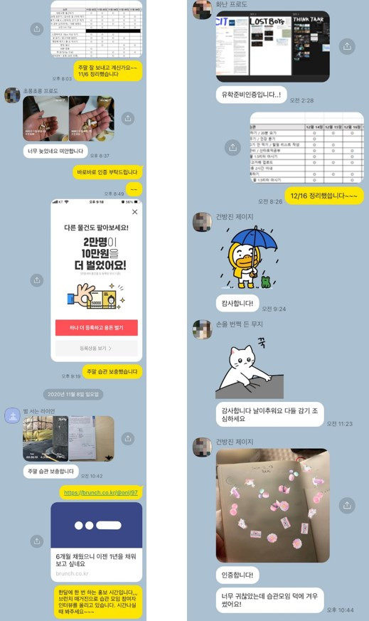 하지만 이 운영 방식은 단점도 존재했는데, 각자가 한 달간 만들어간 기록이 새로운 달이 시작될 때마다 사라진다는 거였다. 그게 아까웠다. 달마다 채팅방이 새로 생기고 사라지면서 각자가 해온 노력이 없었던 일이 돼버리는 것 같았다.