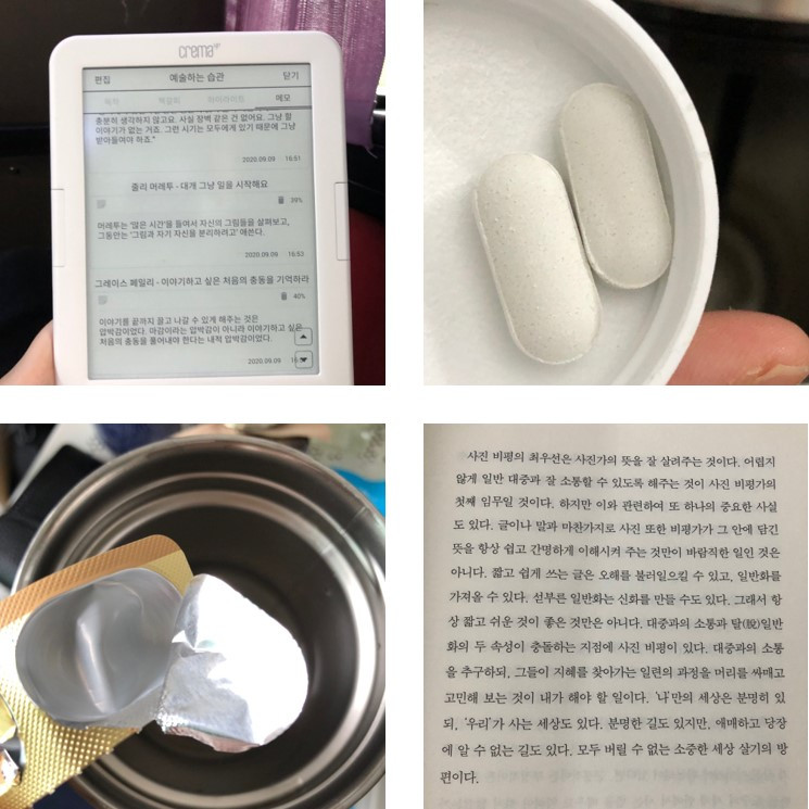 9월 습관은 책 읽기와 영양제 먹기였습니다. 건강한 삶을 위한 기초 두 가지라고 생각했어요. 그전까지는 의식하지 않으면 한참을 까먹고 마는 두 가지이기도 했고요. 몸 건강 맘 건강!
