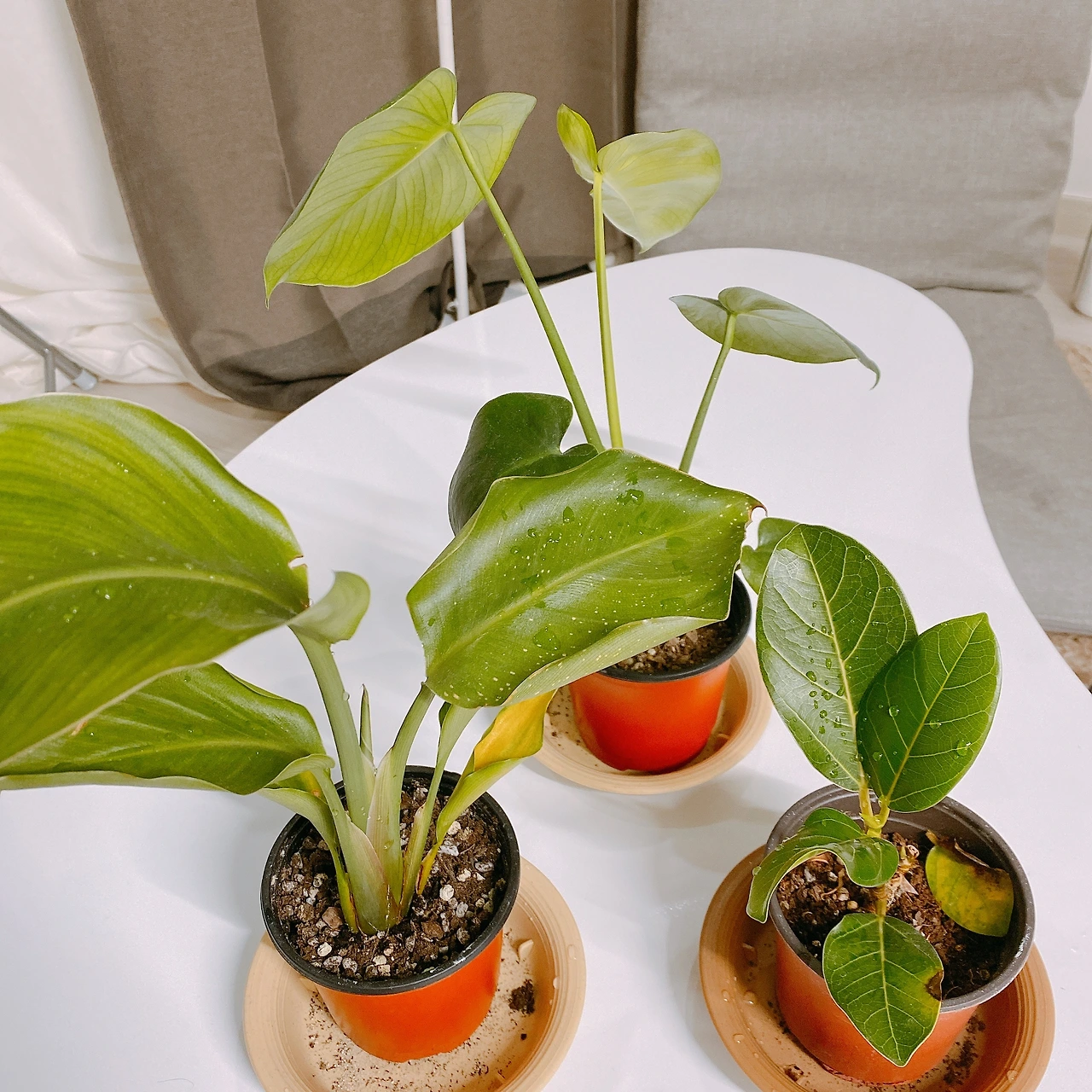 같은 날 세 종류의 식물을 집에 들였다. 계단 한 켠에 자리를 마련하고 꼬박꼬박 물도 챙겨줬다. 세 화분은 이 집에 적응이라도 하듯 한동안은 아무런 변화가 없었다. 그러던 어느 날 뱅갈고무나무의 잎 2-3개가 똑 떨어져 있었다. 당황했다. 다른 식물들은 멀쩡했는데 그 날을 기점으로 뱅갈고무나무 잎사귀가 계속 떨어졌다. 급히 원인을 찾아보니 햇빛 부족이었다. 마음이 급해져 화분 세 개를 창가 가장 가까운 곳으로 옮겨뒀다. 그랬더니 이번엔 극락조 잎이 안으로 말려들어가기 시작했다. 하루가 지날수록 증상이 심해져서 원인을 찾아보니 극락조는 반양지 식물이라 직사광선을 받으면 안 된다고 했다. 그리고 이 난리통 속에서 몬스테라는 안정적으로 새로운 잎을 피워냈고 길어진 잎사귀는 생그러운 색으로 펼쳐졌다.