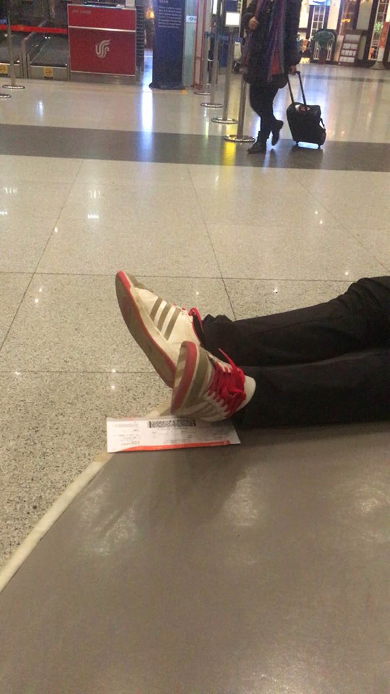반대쪽에는 이미 중국인 아저씨가 몸을 뉘어 새우잠을 자고 있었다. 아저씨의 발 밑에는 백 퍼센트의 확률로 몇 시간 뒤, 그가 타고 가야 할 게 분명한 비행기 티켓이 널브러져 있었다. 뒷일을 조금도 생각하지 않는 그의 대담한 성격에 기가 막혔다.