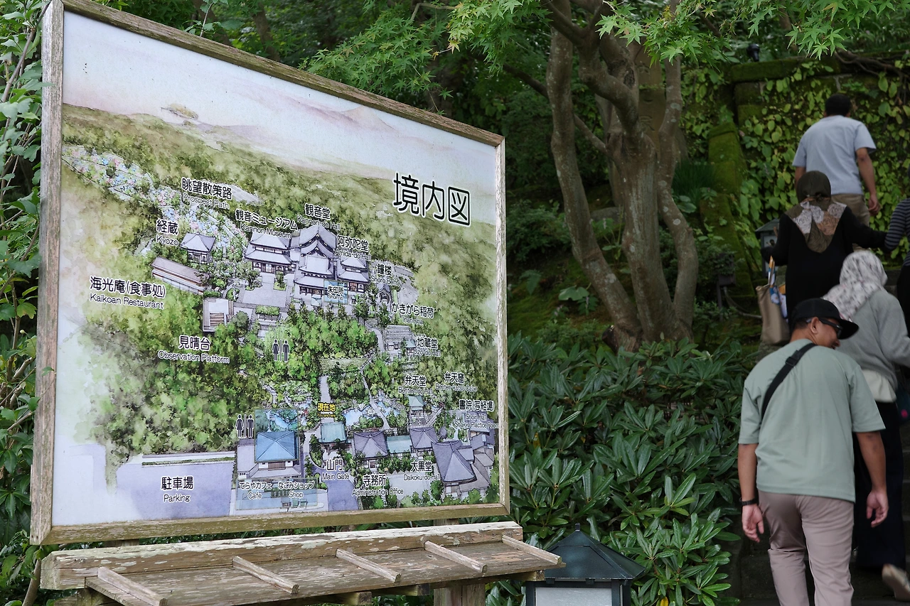 경내 지도를 보니 꽤 올라가야 한다. 지금 시각이 3시 12분인데, 고토쿠인 이후에도 일정이 꽤 있는 만큼 서두를 필요가 있어 보인다.