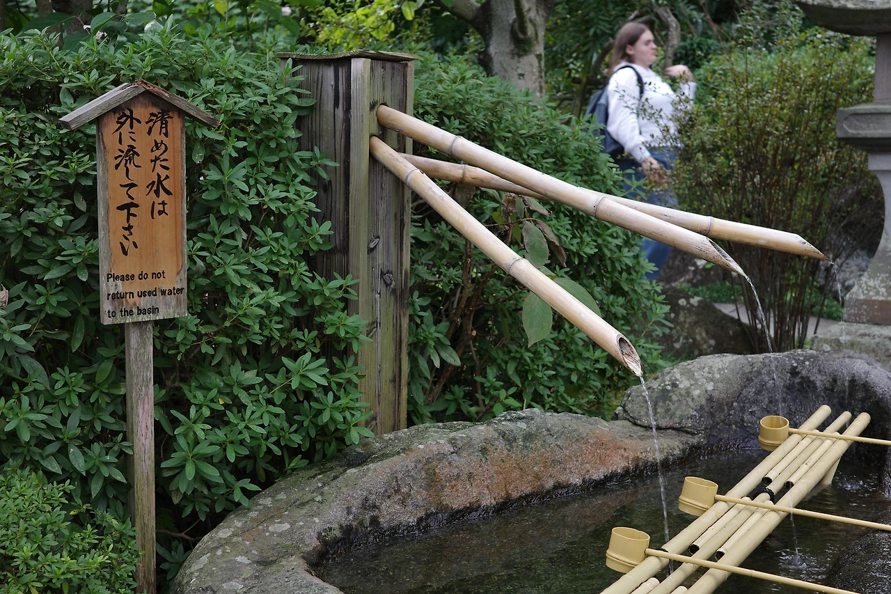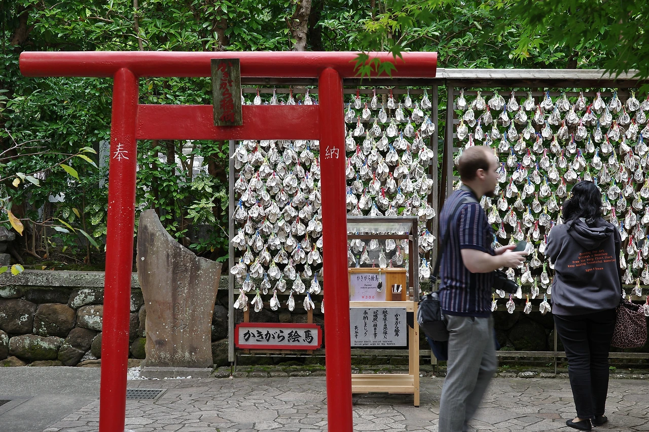 본당인 관음당까지 올라가는 동안 보이는 풍경들. 소원을 적은 굴껍데기를 매달아 놓은 곳이라든지, 작은 연못 속 잉어들도 빠뜨릴 수 없다. 잠깐 모습을 비췄다가 다시 저어기 먼 곳으로 도망치는 황금빛 잉어.