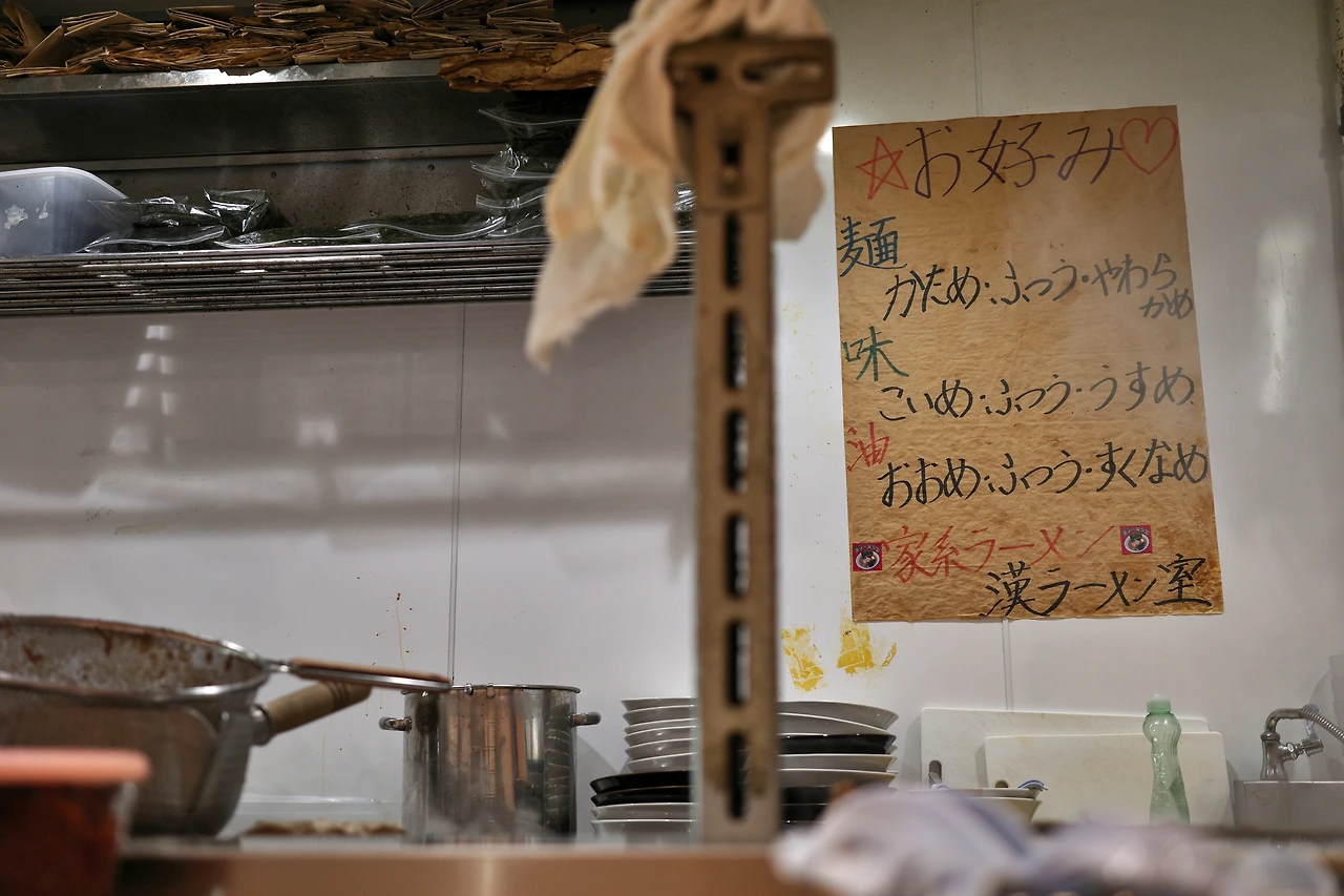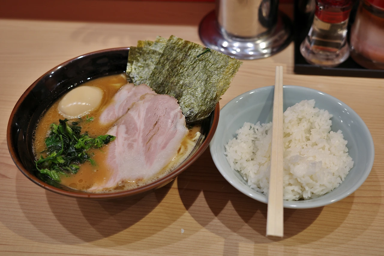금강산도 식후경이니만큼, 우선 점심을 먹고자 긴시쵸역 근처 작은 라멘집 '한 라멘야'(漢ラーメン 室)에 들렀다. 식권을 뽑고 직원분께 면의 익힘 정도, 맛의 농도, 기름의 양, 밥 제공 여부를 말씀드리면 되는데, 일본어를 잘 모르시거나 아무것도 생각하기 싫다면 그냥 "젠부 후쯔우데 오네가이시마스"(전부 보통으로 부탁드립니다)라고 하면 끝. "고항와?"(밥은요?)라고 물으면 그냥 "오네가이시마스" 하시면 된다.