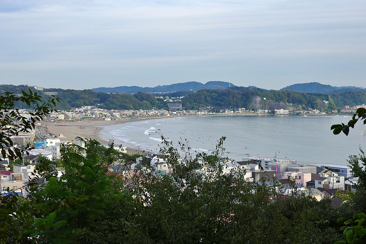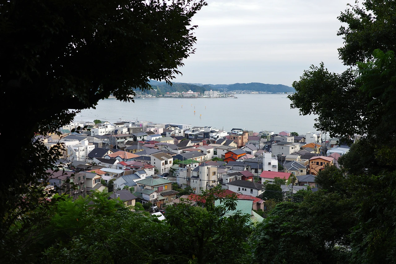 정상에서 찍은 건 아니지만 좀 더 탁 트인 가마쿠라 앞바다의 모습. 어디에서 보느냐에 따라 같은 곳도 다르게 보일 수도 있음을 새삼 느낄 수 있는 포인트.